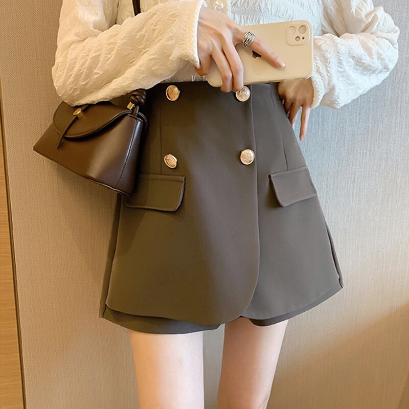 クールな雰囲気の、ハイウエストキュロットスカートです。