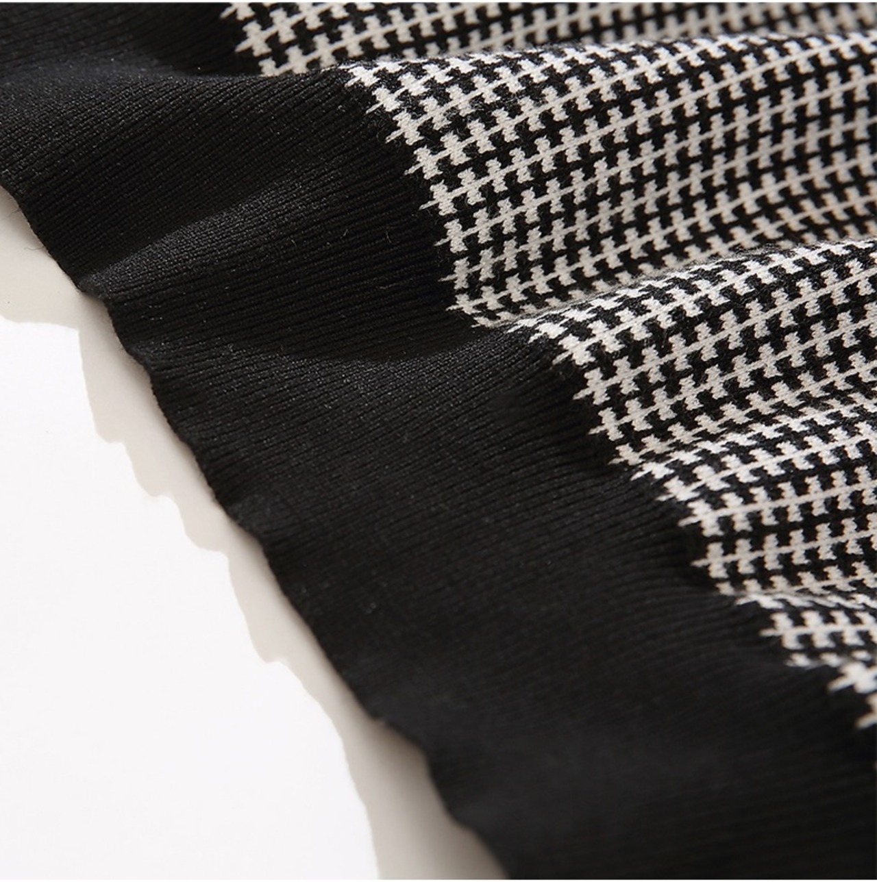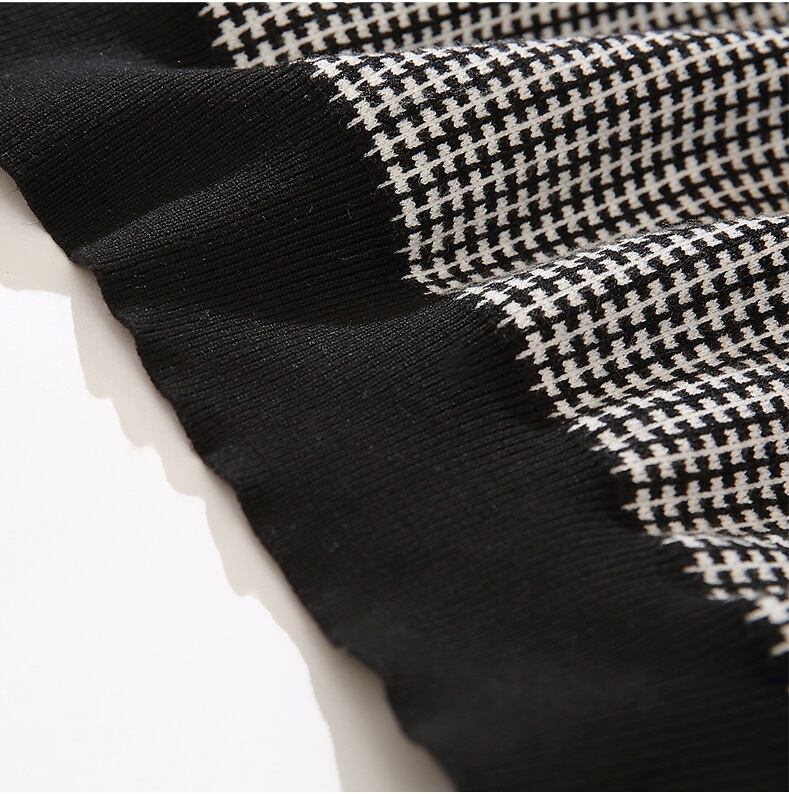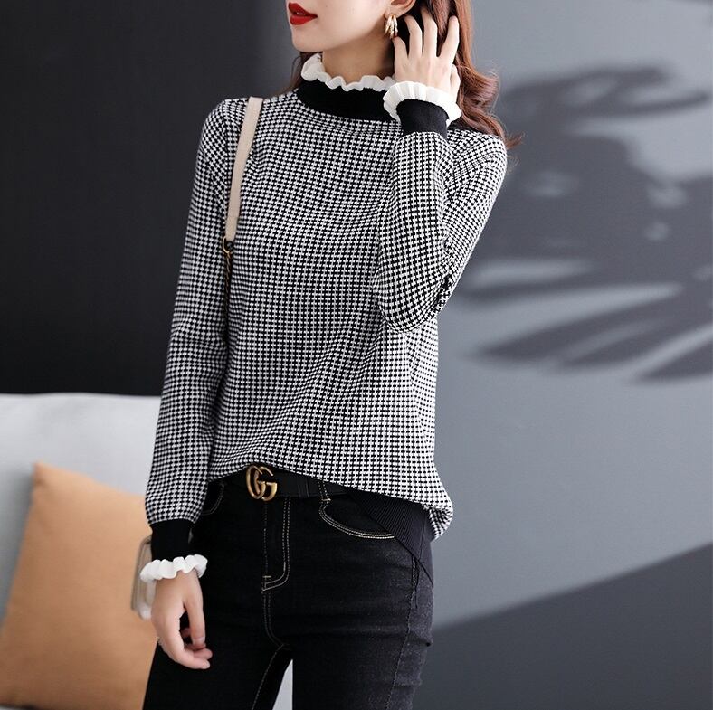ニット セーター 長袖 千鳥格子 秋 冬 フリル かわいい 大人可愛い きれいめ シンプル 大人 上品 大人女子 エレガント ハイネック モノトーン S M L XL 2XL 大きいサイズ 10代 20代 30代 40代 オフィス ビジネス OL 通勤 学生 通学 デート お出かけ 女子会 着回し 普段使い 韓国系 ファッション コーデ モテ プチプラ 送料無料 | Rena 韓国ファッション レディースアパレル