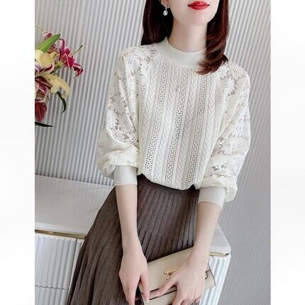 カットソー ニット 七分袖 無地 刺繍 春 秋 冬 レース 透け感 かわいい 大人可愛い きれいめ シンプル 大人 上品 おしゃれ 大人女子 白トップス 白 ホワイト 黒 ブラック S M L XL 2XL 大きいサイズ 10代 20代 30代 40代 50代 オフィス ビジネス OL 通勤 学生 通学 デート お出かけ 女子会 着回し 韓国系 ファッション モテ プチプラ 送料無料 | Rena 韓国ファッション レディースアパレル
