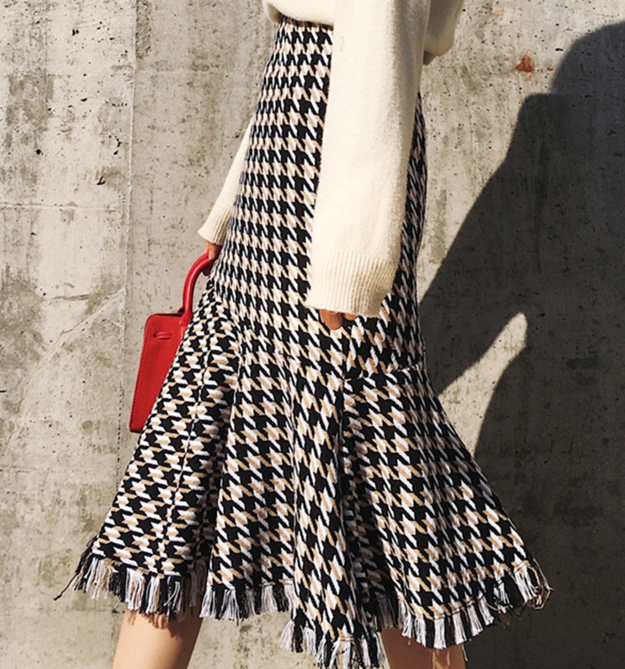 スカート Aラインスカート 七分丈 千鳥格子 秋 冬 マーメイド フリル ハイウエスト かわいい 大人可愛い きれいめ シンプル カジュアル 大人 上品 おしゃれ かっこいい レトロ 大人女子 こなれ感 ラブリー キュート ガーリー エレガント 存在感 7分丈 ブラック 大人カラー S M L XL 10代 20代 30代 40代 50代 60代 オフィス ビジネス OL 通勤 学生 通学 デート お出かけ 女子会 休日 着回し 普段使い ファッション コーデ スタイル 送料無料 | Rena 韓国ファッション レディースアパレル
