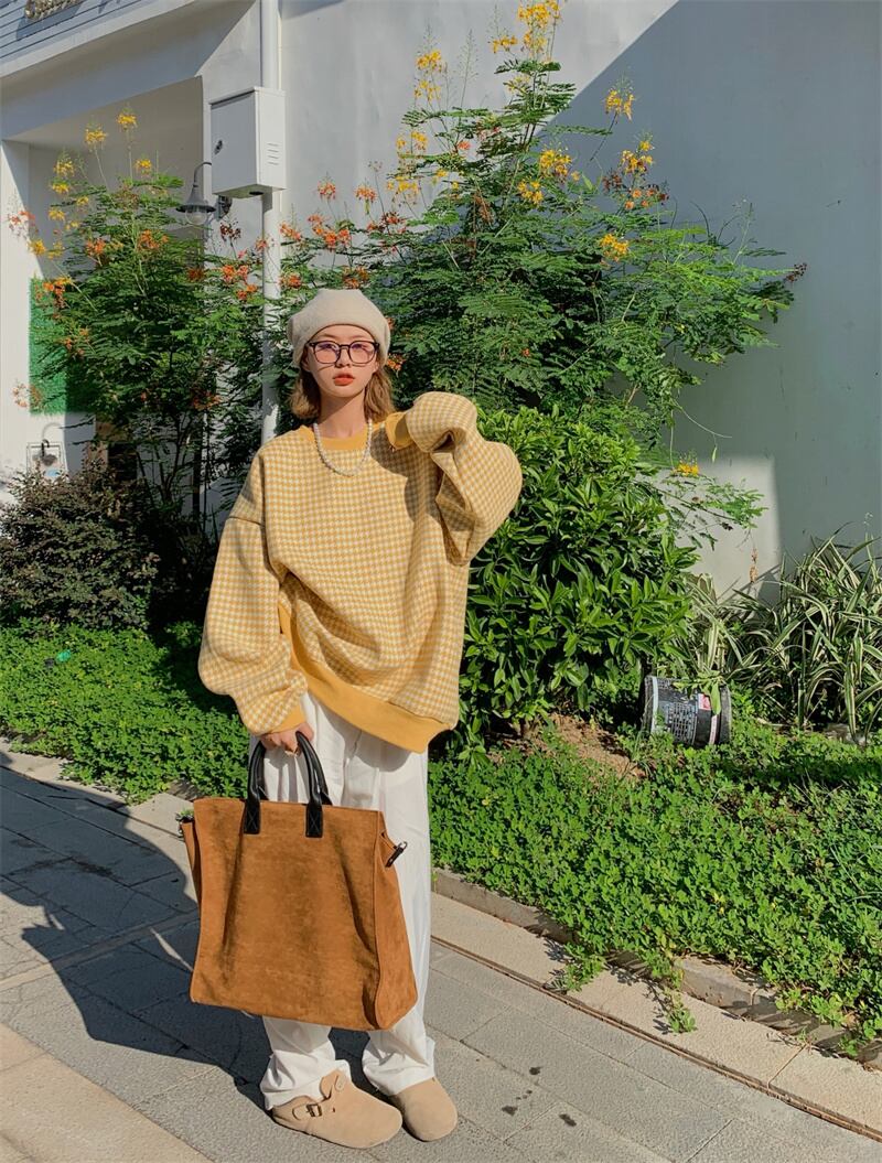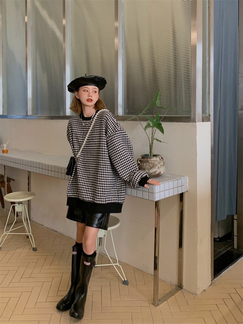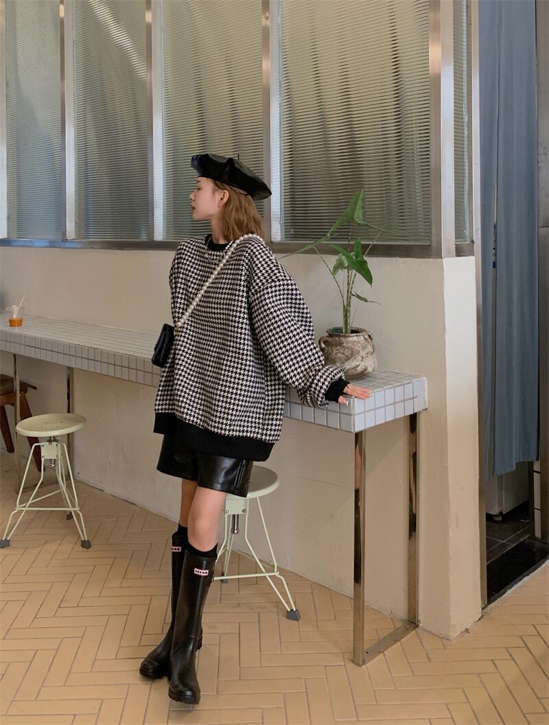 トップス ニット セーター 長袖 千鳥格子 秋 冬 大人可愛い カジュアル おしゃれ お洒落 大人女子 こなれ感 ラフ 存在感 ラウンドネック 袖あり プルオーバー ニット フリーサイズ 大きめ ゆったり 10代 20代 30代 40代 ママ マタニティ OL 通勤 学生 通学 お出かけ 公園デビュー 女子会 休日 着回し 普段使い 重ね着 韓国系 オルチャン ファッション コーデ 楽ちん あったか 暖かい モテ 体系カバー 定番 インスタ映え 送料無料 | Rena 韓国ファッション レディースアパレル