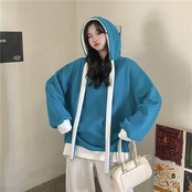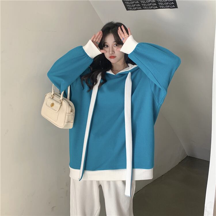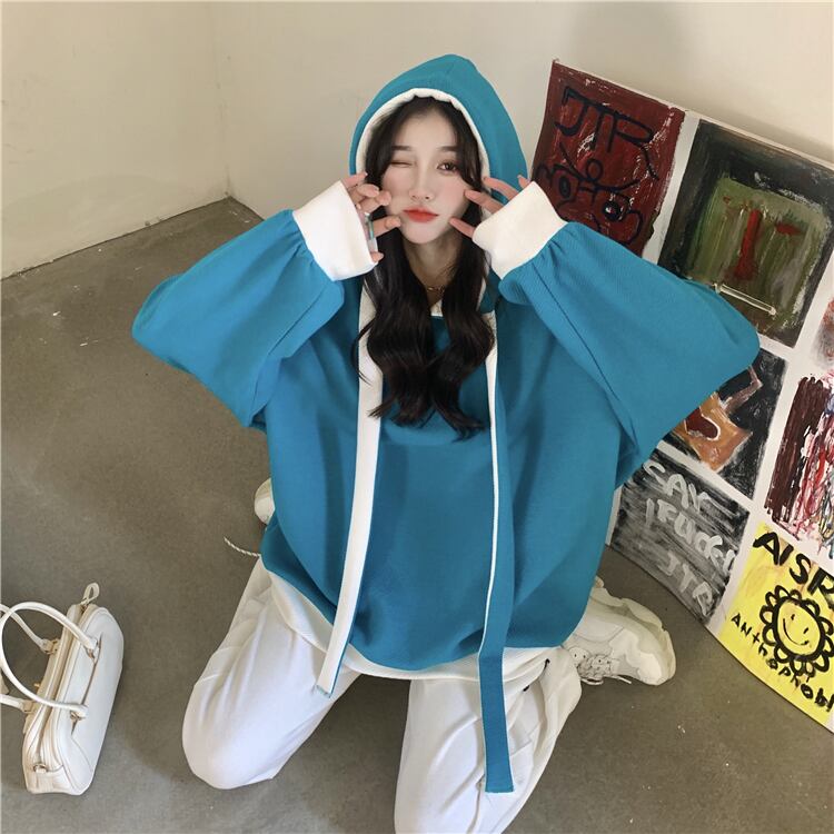 トップス パーカー トレーナー 長袖 無地 秋 冬 ワイド フード付き かわいい 大人可愛い シンプル カジュアル おしゃれ お洒落 大人女子 ラフ メンズライク マニッシュ ボーイッシュ 個性的 袖あり プルオーバー フーディー 薄手 青 ブルー オフホワイト フリーサイズ 大きい 大きめ ビッグサイズ ゆったり ゆる 10代 20代 30代 学生 女子会 休日 普段使い 重ね着 お揃い 双子 韓国系 楽ちん あったか 暖かい 防寒 モテ 体系カバー 定番 プチプラ インスタ映え ゆったり 送料無料 | Rena 韓国ファッション レディースアパレル