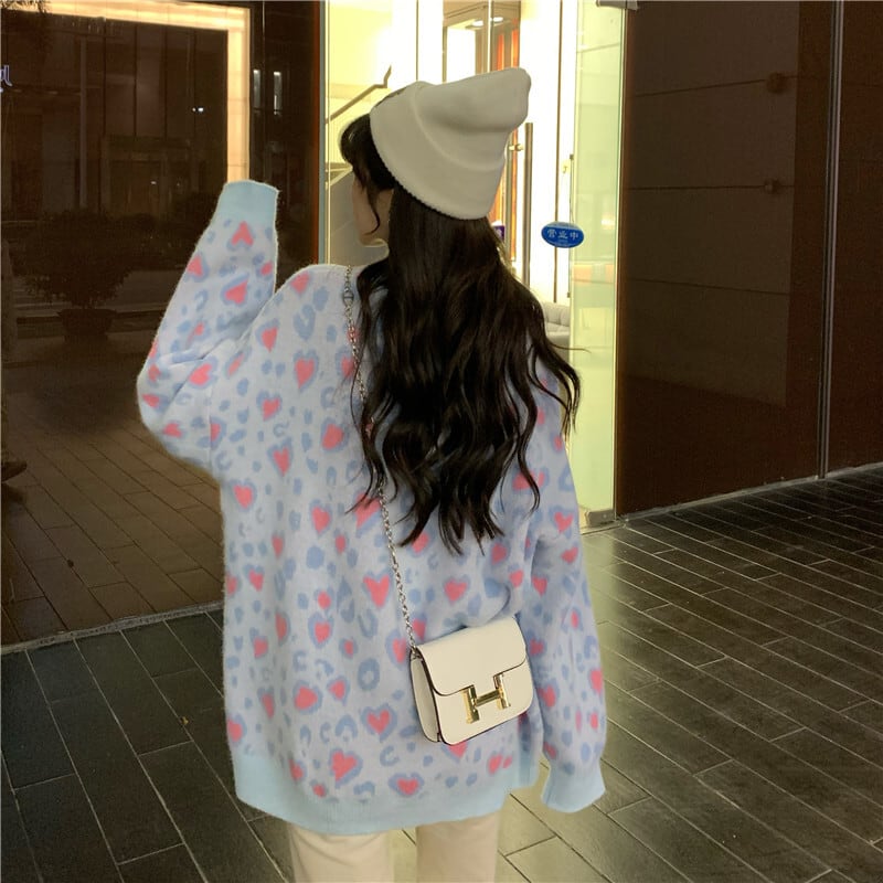トップス セーター トレーナー 長袖 柄 ヒョウ柄 レオパード 秋 冬 ふわふわ かわいい 大人可愛い カジュアル おしゃれ お洒落 レトロ ラフ メンズライク ラブリー キュート ガーリー 個性的 主役級 ラウンドネック 襟なし プルオーバー スウェット 部屋着 ニット 白 ホワイト 青 ブルー ピンク カラバリ フリーサイズ ゆったり ゆる 10代 20代 30代 40代 50代 女性用 ママ マタニティ 通勤 学生 着回し 楽ちん 暖かい モテ 体系カバー トレンド 流行 インスタ映え 送料無料 | Rena 韓国ファッション レディースアパレル