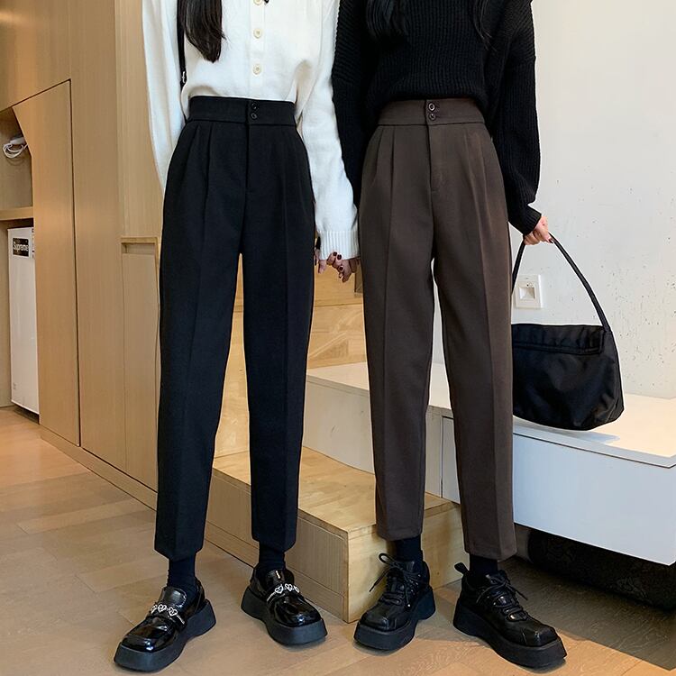 パンツ レディース ストレートパンツ アンクル丈 無地 秋 冬 ファスナー ポケット 大人可愛い シンプル カジュアル 大人 おしゃれ お洒落 かっこいい レトロ 大人女子 こなれ感 個性的 9分丈 ウール 黒 ブラック 茶色 ブラウン 灰色 グレー 大人カラー 秋カラー S M L 10代 20代 30代 40代 女性用 ママ OL 通勤 学生 通学 お出かけ 公園デビュー 女子会 お泊まり 休日 着回し 普段使い お揃い 双子 韓国 オルチャン ファッション コーデ スタイル 楽ちん 体系カバー 美脚 | Rena 韓国ファッション レディースアパレル