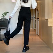 足首までの長さですっきり履ける、シンプルなスーツパンツです。