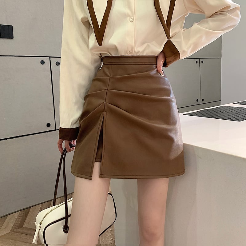 スカート タイトスカート ミニスカート ミニ丈 無地 秋 冬 タイト ギャザー スリット ハイウエスト 大人可愛い カジュアル 大人 おしゃれ お洒落 かっこいい エキゾチック 大人女子 クール セクシー レザー 黒 ブラック 茶色 ブラウン オフホワイト 大人カラー 秋カラー S M L 10代 20代 30代 40代 女性用 ママ OL 通勤 学生 通学 お出かけ 公園デビュー 女子会 お泊まり 休日 イベント 着回し 普段使い お揃い 双子 韓国 オルチャン ファッション コーデ スタイル 美脚 | Rena 韓国ファッション レディースアパレル