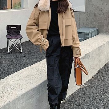 ゆったりとしたルーズシルエットに首もとのファーが暖かく、冬の寒さからしっかりと守ってくれます。