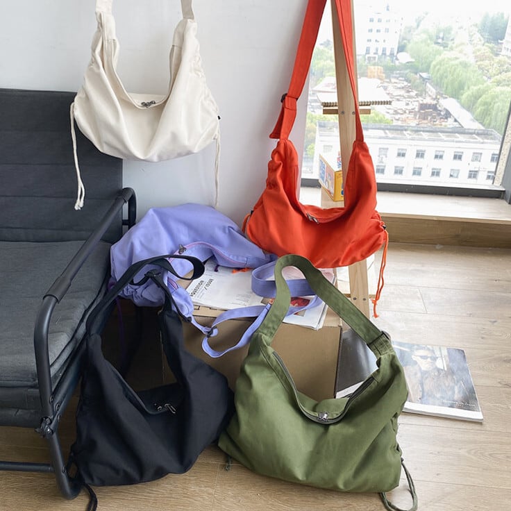 バッグ レディース ショルダーバッグ 無地 スクエア型 四角 ファスナー 大容量 多収納 斜め掛け 肩がけ 肩掛け 柔らかい バック カバン かばん 鞄 レディースバッグ 通勤バッグ 通勤バック 斜め掛けバッグ パソコンバッグ 旅行バッグ 旅行カバン ナイロン シンプル クール 大きめ ビッグサイズ 白 ホワイト 黒 ブラック 紫 パープル カーキ オレンジ キャメル 春 夏 秋 冬 オールシーズン 男女兼用 ユニセックス 通勤 通学 お泊まり スポーツ デイリー 普段使い コーデ 送料無料 | Rena 韓国ファッション レディースアパレル