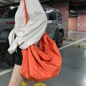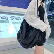 柔らかく軽い生地で持ちやすく、なんといっても沢山物が入る大容量が魅力的なショルダーバッグです。