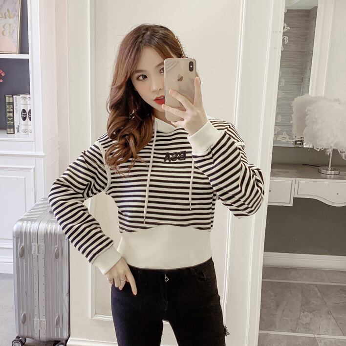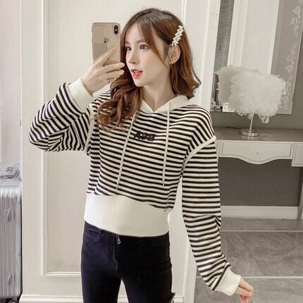 パーカー 長袖 ボーダー 春 秋 冬 ウエスト かわいい 大人可愛い きれいめ シンプル カジュアル おしゃれ かっこいい こなれ感 ラフ ラブリー キュート ガーリー Vネック フーディー 白 ホワイト イエロー S M L XL 10代 20代 学生 通学 デート お出かけ 公園デビュー 女子会 休日 運動 ジム ヨガ リゾート ファッション コーデ スタイル 送料無料 | Rena 韓国ファッション レディースアパレル