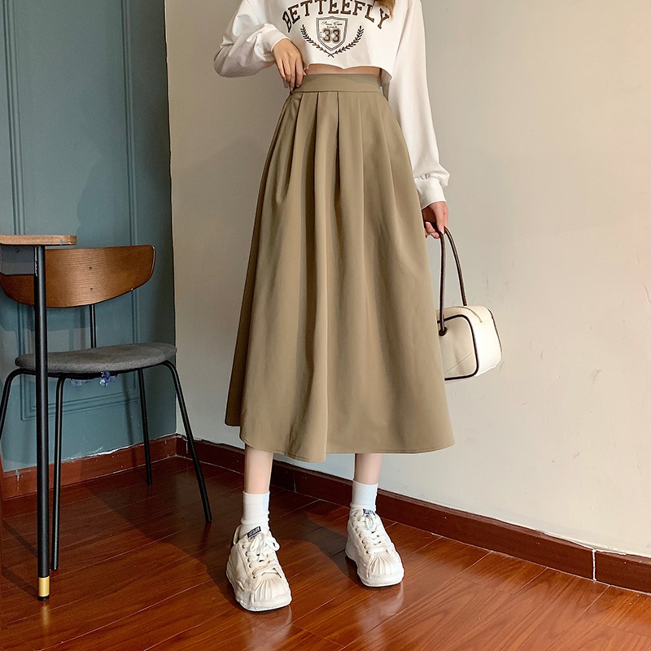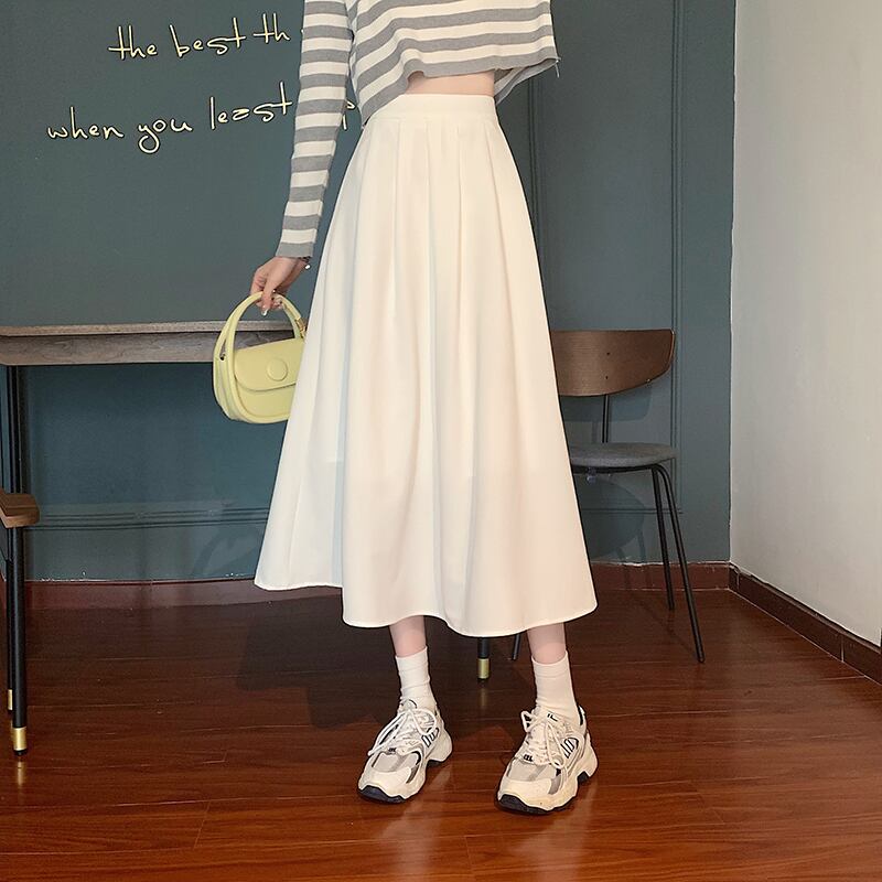 スカート フレアワンピース Aラインワンピース ミモレ丈 無地 春 秋 冬 フレア Aライン かわいい 大人可愛い きれいめ シンプル 大人 上品 おしゃれ お洒落 かっこいい 大人女子 こなれ感 ガーリー クール エレガント モダン とろみ感 白 ホワイト 黒 ブラック 灰色 グレー カーキ S M L 10代 20代 30代 OL 通勤 学生 通学 デート お出かけ 公園デビュー 女子会 コーデ スタイル モテ 送料無料 | Rena 韓国ファッション レディースアパレル