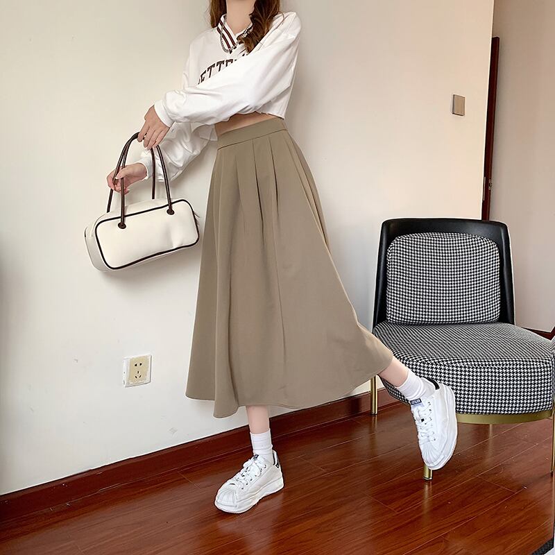 シンプルデザインで着こなしやすい、Aラインスカートです。