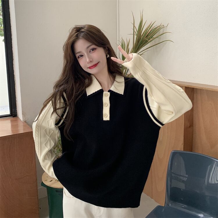 セーター 長袖 無地 秋 冬 スリム ワイド Iライン かわいい 大人可愛い きれいめ シンプル カジュアル 大人 上品 おしゃれ お洒落 レトロ 大人可愛い 大人女子 マニッシュ ボーイッシュ とろみ感 Vネック 襟付き 袖あり 黒 ブラック 緑 グリーン ピンク くすみカラー 大人カラー ワンサイズ 20代 30代 学生 通学 デート お出かけ 公園デビュー 女子会 休日 着回し 普段使い お揃い 韓国 韓国系 オルチャン ファッション コーデ スタイル 新作 送料無料 トレンド 流行 インスタ映え | Rena 韓国ファッション レディースアパレル