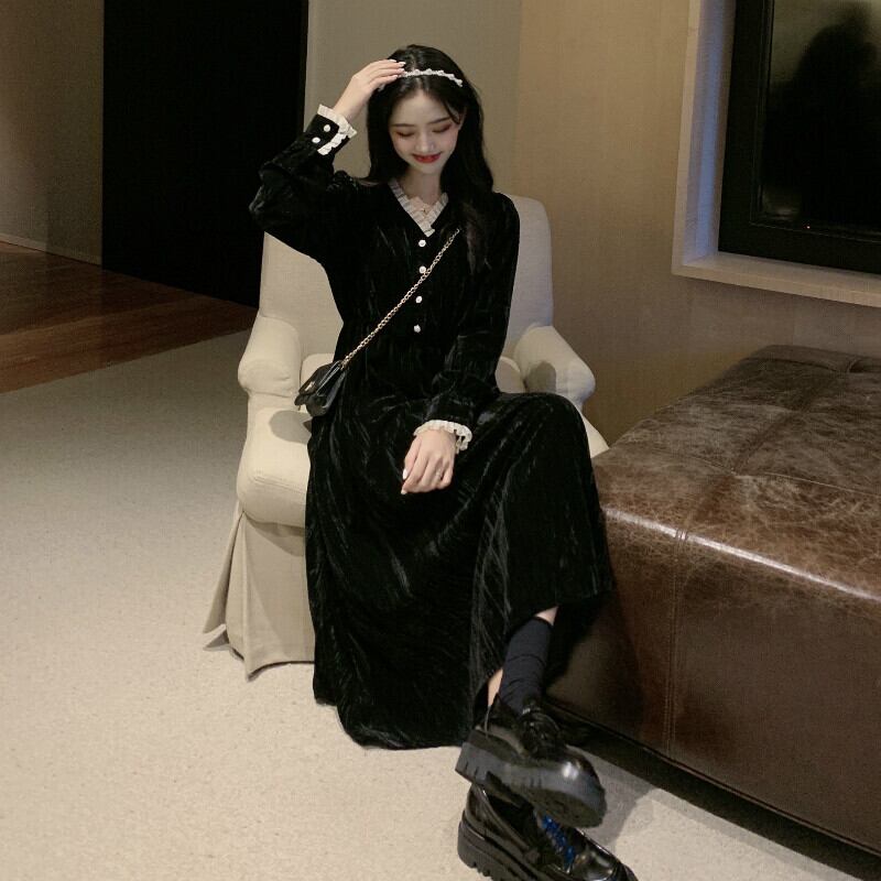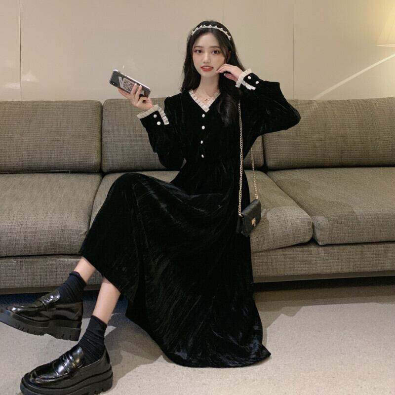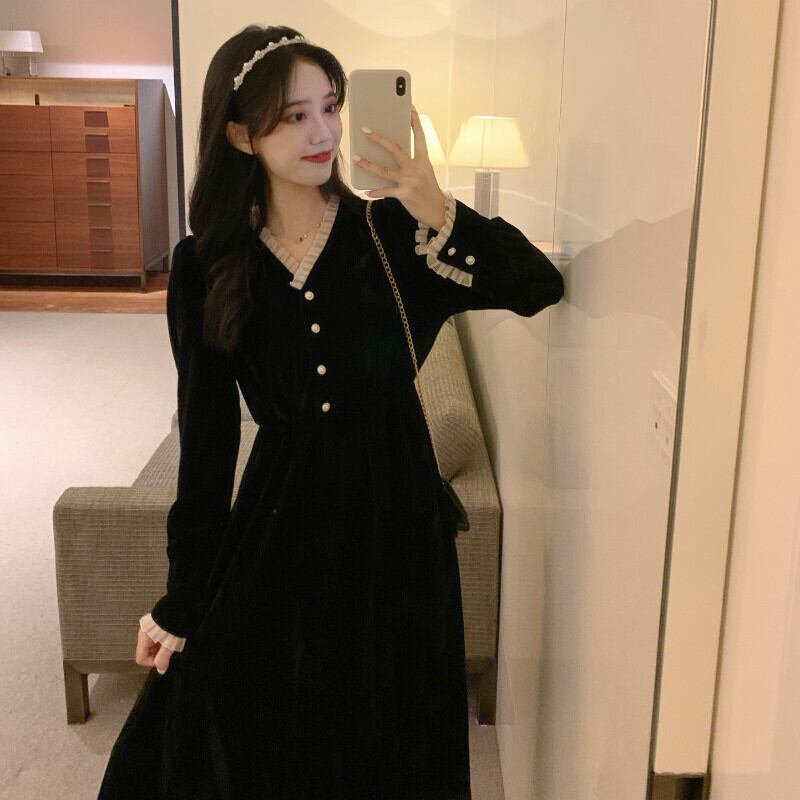 ワンピース レディース Aラインワンピース ショート丈 ミディアム丈 長袖 無地 秋 冬 Aライン かわいい 大人可愛い きれいめ シンプル カジュアル 大人 上品 おしゃれ お洒落 レトロ 大人可愛い 大人女子 クール フォーマル とろみ感 Vネック ショート ミモレ 袖あり 黒 ブラック ベイクドカラー ワンサイズ 20代 30代 学生 通学 デート お出かけ 女子会 休日 着回し 普段使い 韓国 韓国系 オルチャン コーデ スタイル 定番 プチプラ 送料無料 トレンド 流行 インスタ映え | Rena 韓国ファッション レディースアパレル