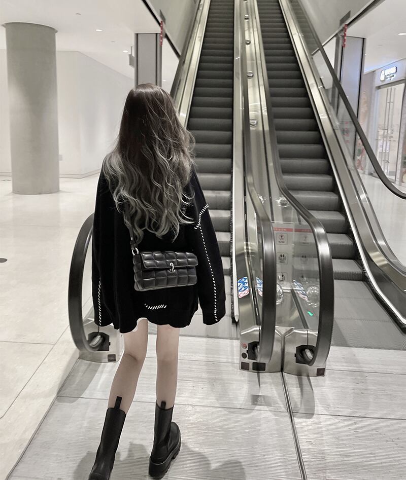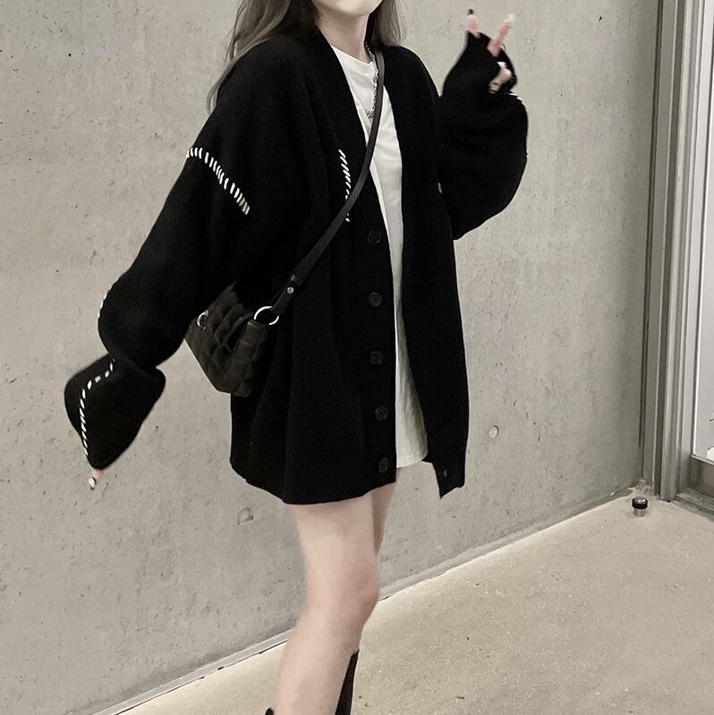 アウター レディース カーディガン 長袖 無地 秋 冬 ワイド アシンメトリー 前開き かわいい カジュアル おしゃれ お洒落 ラフ ラブリー キュート ガーリー モード系 Vネック 袖あり ボリューム袖 パフスリーブ ブラック フリーサイズ ゆったり 10代 20代 女性用 学生 通学 デート お出かけ 休日 着回し 普段使い 重ね着 ファッション コーデ スタイル あったか 暖かい 防寒 体系カバー ゆったり | Rena 韓国ファッション レディースアパレル