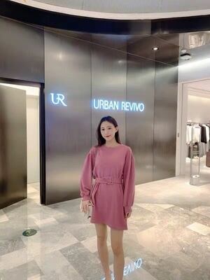 ワンピース ミニ丈 長袖 無地 秋 冬 スリム ストレート ベルト ウエストマーク サイドスリット かわいい カジュアル ラブリー キュート ガーリー Uネック ボリューム袖 パフスリーブ ブラック ピンク S M L XL 10代 20代 女性用 デート お出かけ 休日 着回し 普段使い オルチャン ファッション コーデ スタイル モテ 美脚 脚長 | Rena 韓国ファッション レディースアパレル