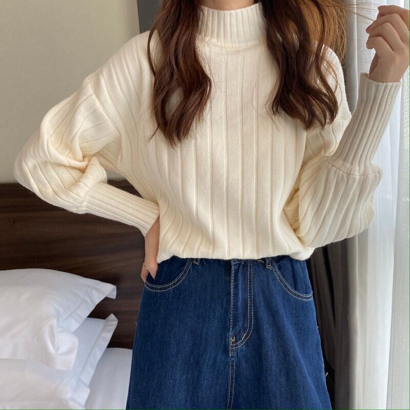 ニット セーター 長袖 無地 秋 冬 リブ リブニット かわいい きれいめ シンプル カジュアル おしゃれ お洒落 こなれ感 ラブリー キュート ガーリー ハイネック ニット ホワイト レッド ブラウン ベージュ ピンク フリーサイズ 10代 20代 30代 40代 50代 60代 女性用 オフィス ビジネス OL 通勤 デート お出かけ 公園デビュー 女子会 休日 着回し 普段使い オルチャン ファッション コーデ あったか 暖かい | Rena 韓国ファッション レディースアパレル