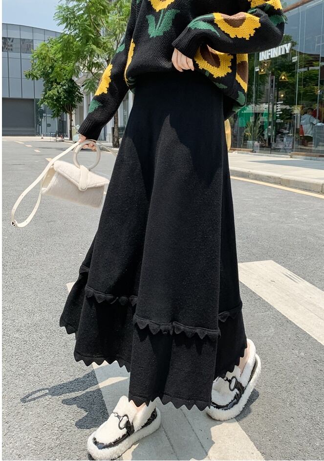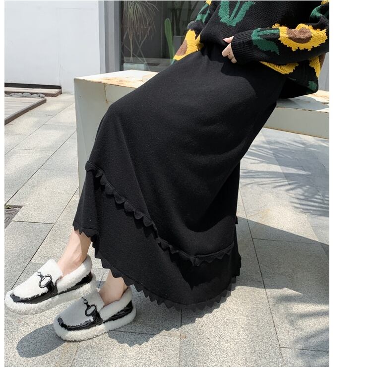 スカート ロングスカート Aラインスカート ロング丈 無地 秋 冬 細身 Aライン 裾フレア 大人可愛い シンプル カジュアル 大人 上品 おしゃれ お洒落 かっこいい レトロ ガーリー ニット 白 ホワイト 黒 ブラック 灰色 グレー 大人カラー モノトーン S M L XL 2XL 10代 20代 30代 40代 50代 女性用 オフィス OL 通勤 学生 通学 デート クリスマス バレンタイン 着回し 普段使い お揃い 双子 韓国系 ファッション コーデ スタイル 脚長 プレゼント ギフト | Rena 韓国ファッション レディースアパレル