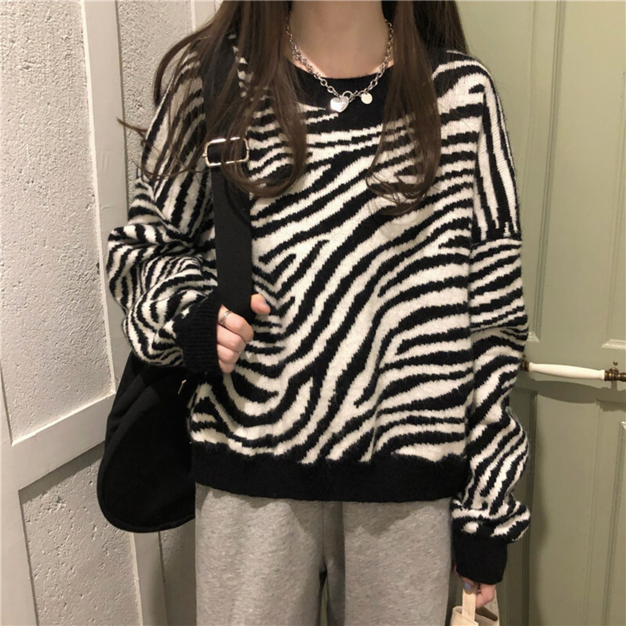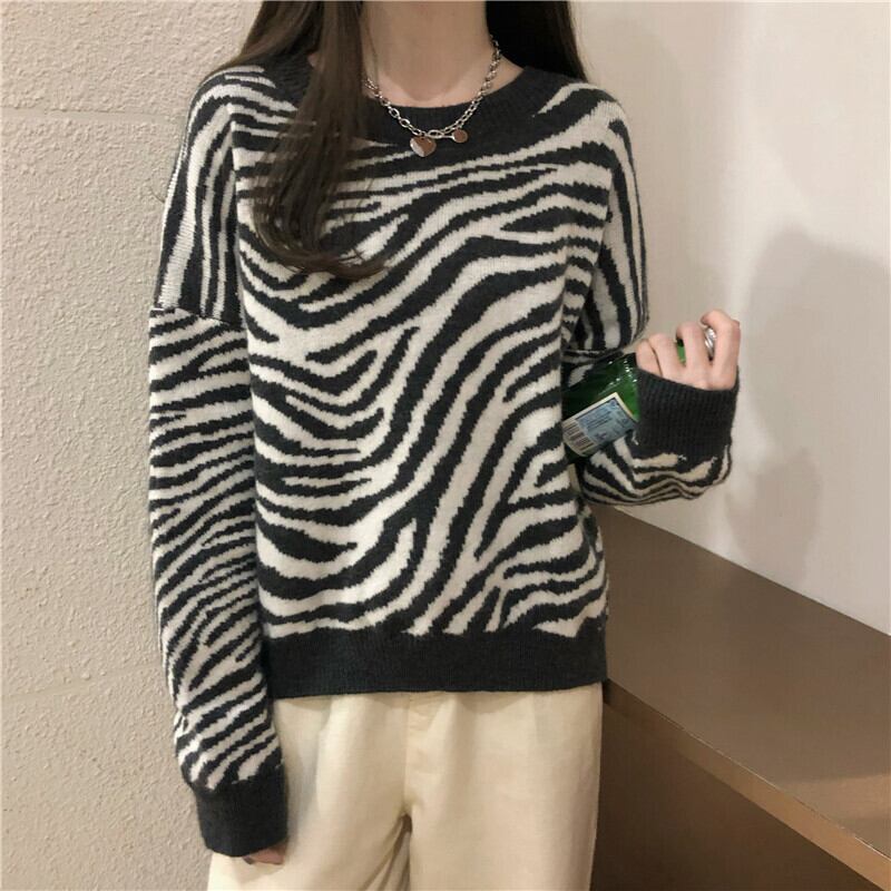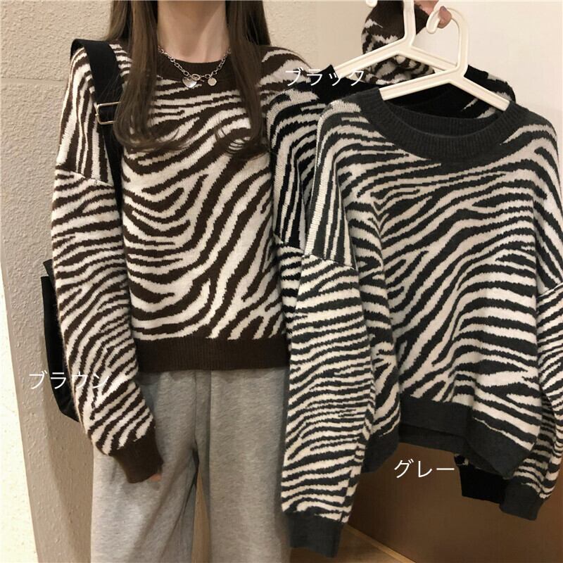 ニット セーター 長袖 セブラ柄 春 秋 冬 かわいい 大人可愛い きれいめ シンプル カジュアル 大人 上品 おしゃれ お洒落 かっこいい レトロ 大人女子 こなれ感 ラフ ルーズ 個性的 Uネック ニット 白 ホワイト 黒 ブラック ブラウン グレー 10代 20代 30代 40代 OL 通勤 学生 通学 デート お出かけ 公園デビュー 女子会 ファッション コーデ スタイル あったか 暖かい モテ 送料無料 | Rena 韓国ファッション レディースアパレル