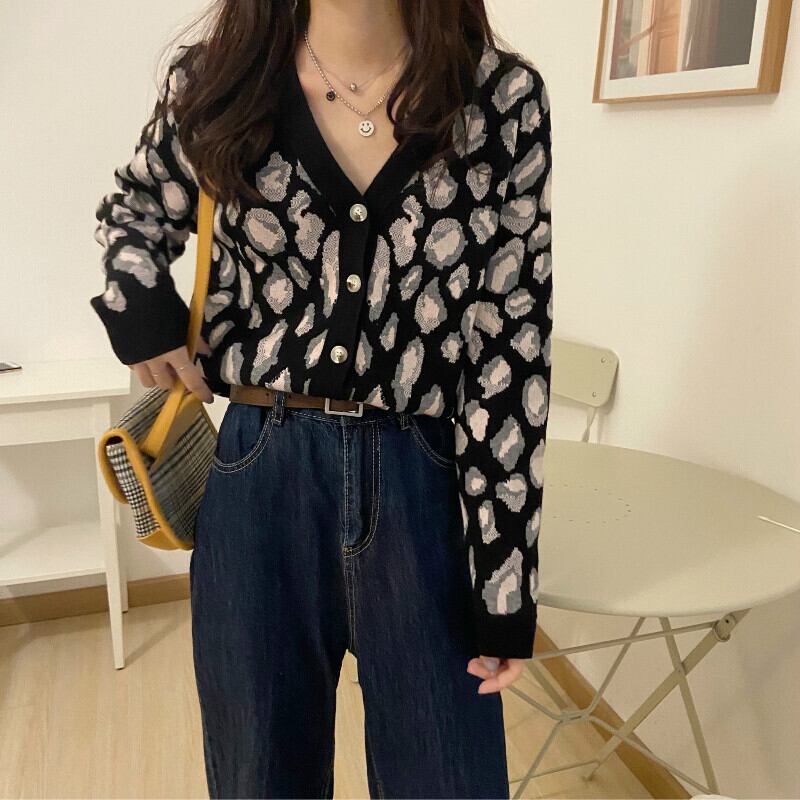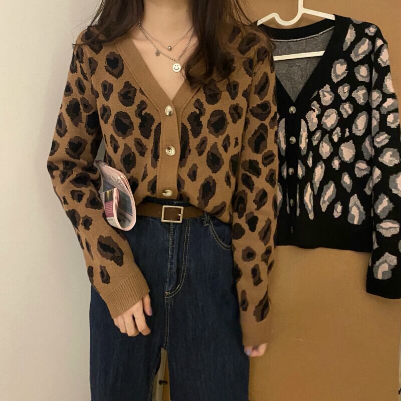 ニット カーディガン ヒョウ柄 ライン 春 秋 冬 前開き かわいい 大人可愛い きれいめ 大人 上品 おしゃれ お洒落 レトロ 大人女子 個性的 Vネック 襟なし 黒 ブラック 茶色 ブラウン 10代 20代 30代 40代 50代 60代 OL 通勤 学生 通学 デート お出かけ 女子会 着回し ファッション コーデ スタイル あったか 暖かい 送料無料 | Rena 韓国ファッション レディースアパレル