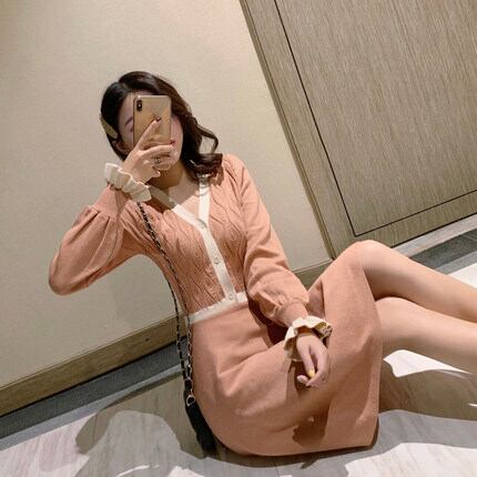 ワンピース ニット フレアワンピース ショート丈 長袖 無地 ライン 春 秋 冬 Aライン 裾フレア ウエストマーク かわいい 大人可愛い きれいめ 大人 上品 おしゃれ お洒落 大人女子 こなれ感 ラブリー キュート ガーリー Vネック 萌袖 黒 ブラック ピンク S M L XL 10代 20代 OL 通勤 学生 通学 デート お出かけ 女子会 ファッション コーデ スタイル モテ 送料無料 | Rena 韓国ファッション レディースアパレル
