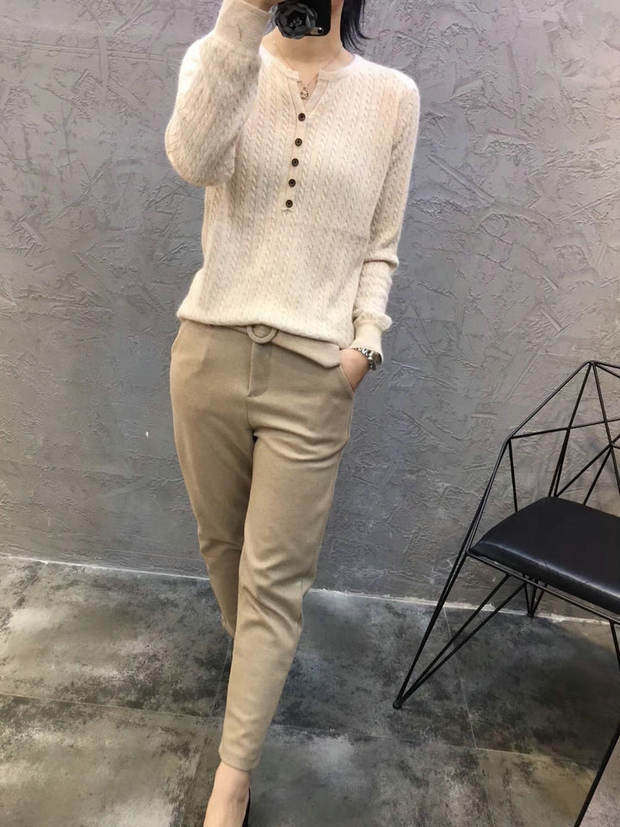 カットソー ニット 長袖 ボタン 春 秋 冬 かわいい 大人可愛い きれいめ シンプル 大人 上品 おしゃれ お洒落 かっこいい 大人女子 こなれ感 Vネック 白 ホワイト ベージュ 10代 20代 30代 40代 50代 60代 OL 通勤 学生 通学 デート お出かけ 公園デビュー 女子会 着回し 普段使い 重ね着 ファッション コーデ スタイル モテ 送料無料 | Rena 韓国ファッション レディースアパレル