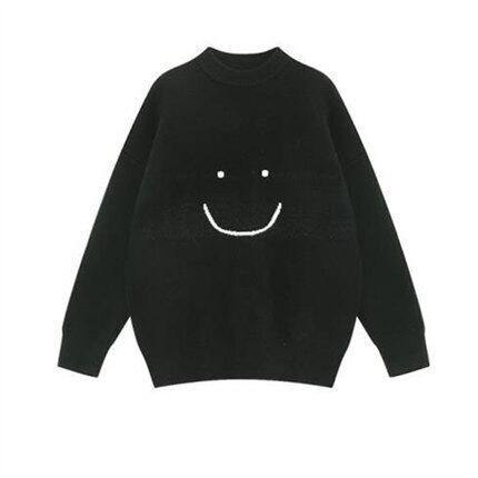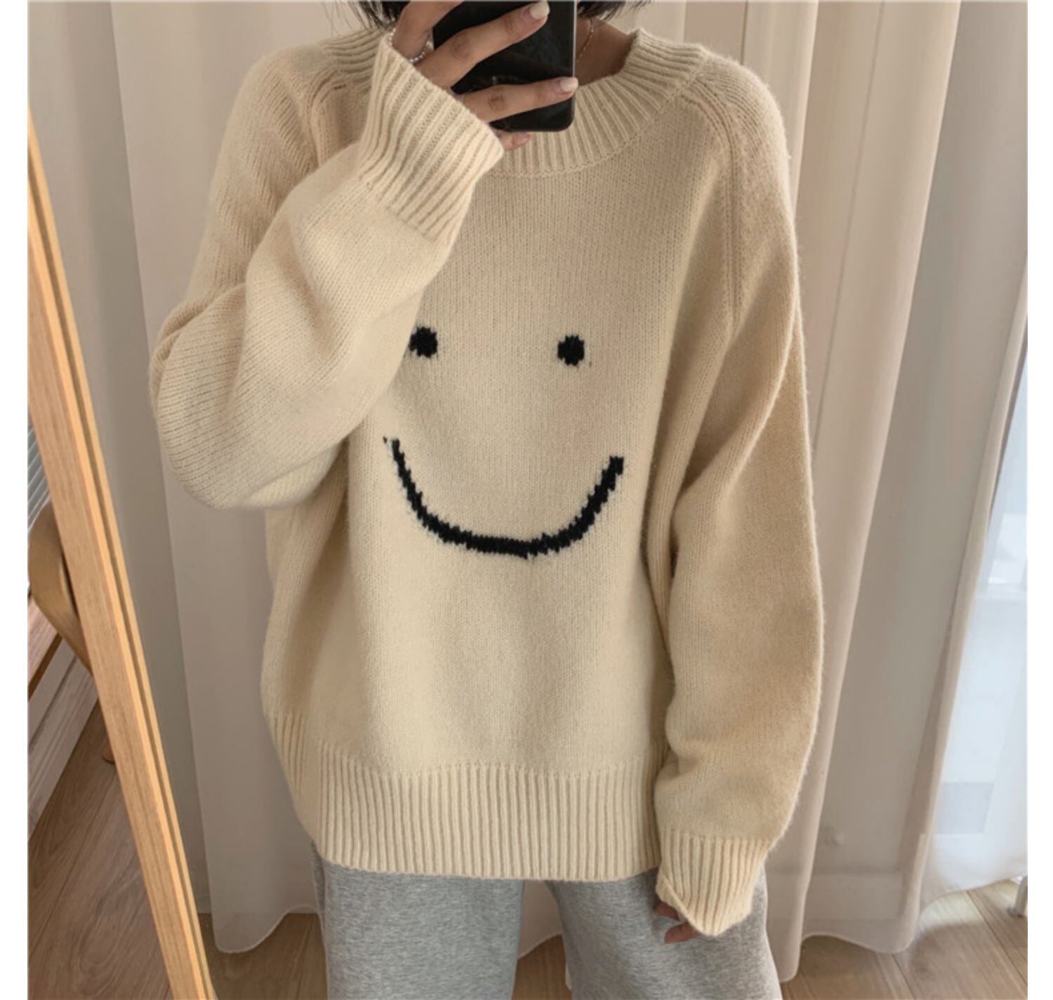 大胆に大きく描かれたスマイルマークが個性的でキュートなニットです。
