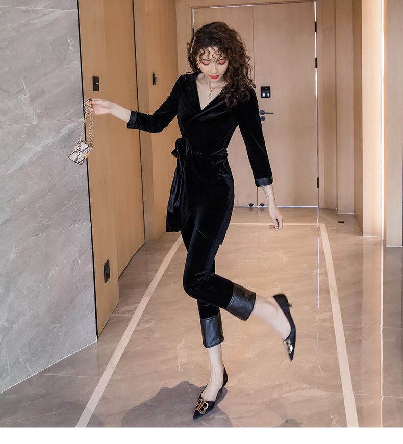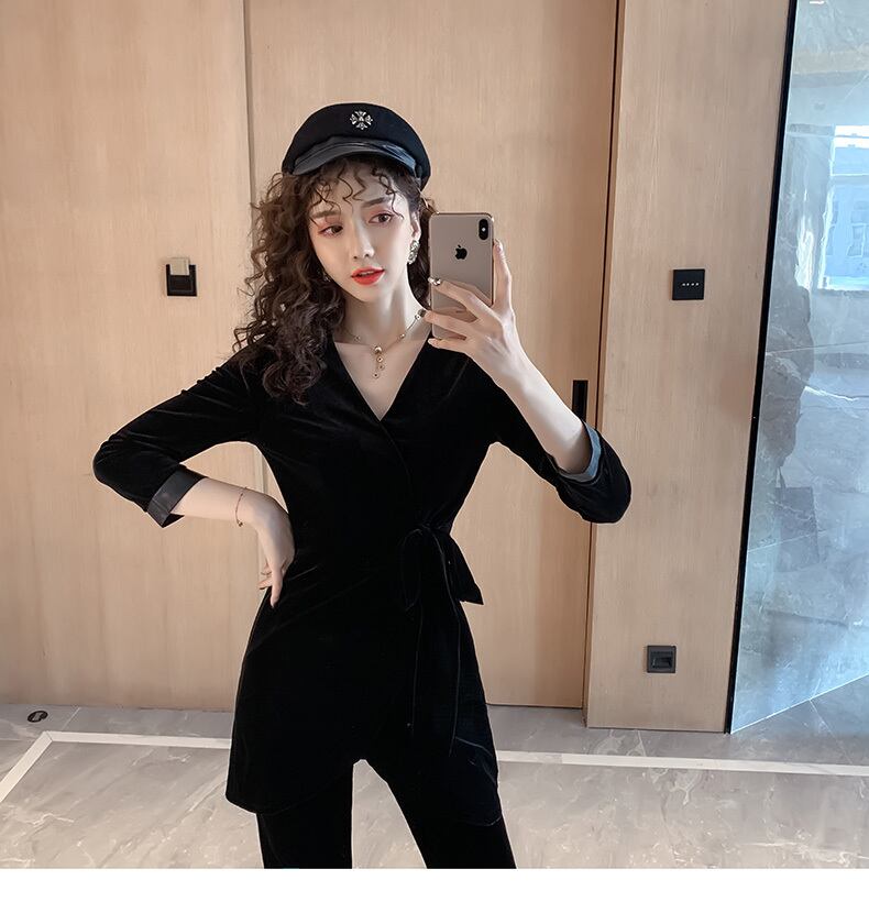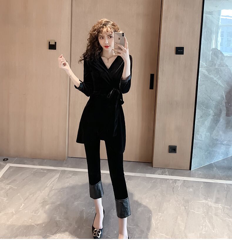 セットアップ ストレートパンツ アンクル丈 長袖 無地 秋 冬 スリム 細身 ストレート ウエストマーク ウエストリボン ポケット 前開き きれいめ シンプル 上品 おしゃれ お洒落 かっこいい 個性的 クール モード系 存在感 Vネック 襟付き 7分丈 上下セット 2点セット 黒 S M L XL 20代 30代 40代 女性用 パーティー イベント ファッション コーデ スタイル 美脚 脚長 | Rena 韓国ファッション レディースアパレル