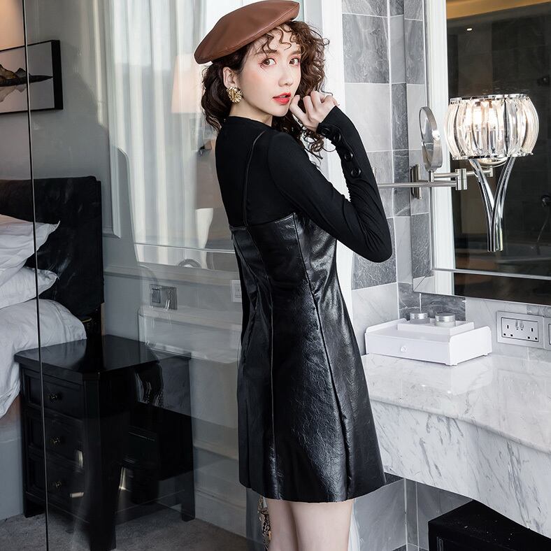 ワンピース キャミソールワンピース タイトワンピース ショート丈 PU 長袖 無地 スリム 細身 ファスナー 大人可愛い きれいめ おしゃれ お洒落 かっこいい 大人女子 ラブリー キュート ガーリー モード系 モダン 存在感 クルーネック ミニ ショート 2点セット ブラック ブラウン S M L XL 10代 20代 女性用 デート お出かけ 女子会 休日 パーティー イベント 重ね着 ファッション コーデ スタイル モテ 美脚 脚長 | Rena 韓国ファッション レディースアパレル