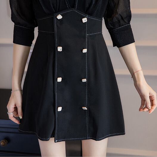 ワンピース Aラインワンピース ショート丈 七分袖 無地 春 夏 秋 細身 Aライン ウエストマーク 透け感 かわいい カジュアル おしゃれ お洒落 レトロ こなれ感 ラブリー キュート ガーリー モダン Vネック ミニ ショート 7分袖 パフスリーブ ブラック アプリコット S M L XL 10代 20代 女性用 デート お出かけ 女子会 休日 パーティー イベント ファッション コーデ スタイル モテ 美脚 脚長