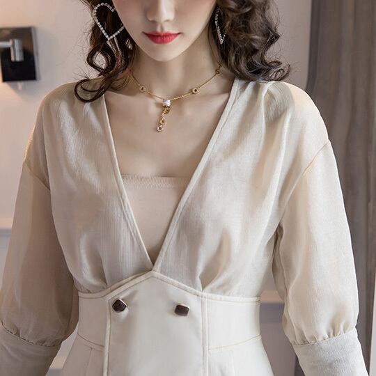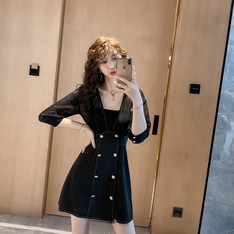 ワンピース Aラインワンピース ショート丈 七分袖 無地 春 夏 秋 細身 Aライン ウエストマーク 透け感 かわいい カジュアル おしゃれ お洒落 レトロ こなれ感 ラブリー キュート ガーリー モダン Vネック ミニ ショート 7分袖 パフスリーブ ブラック アプリコット S M L XL 10代 20代 女性用 デート お出かけ 女子会 休日 パーティー イベント ファッション コーデ スタイル モテ 美脚 脚長 | Rena 韓国ファッション レディースアパレル