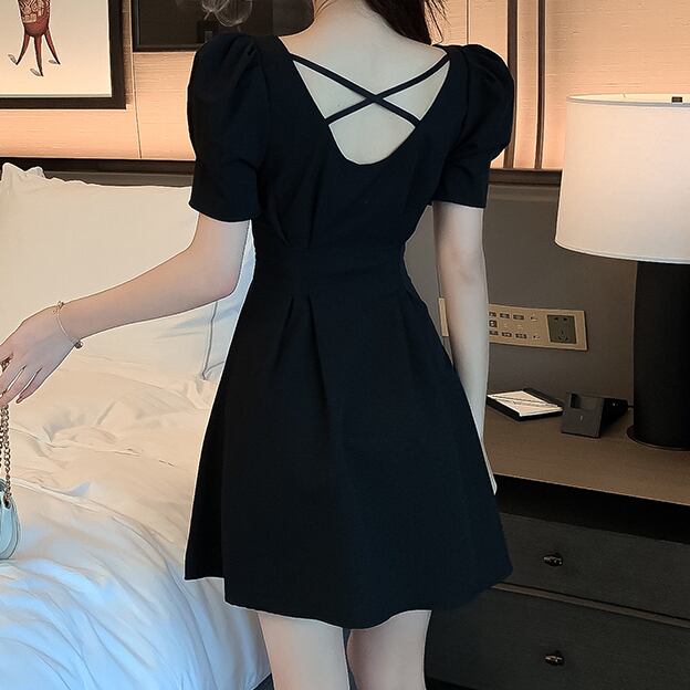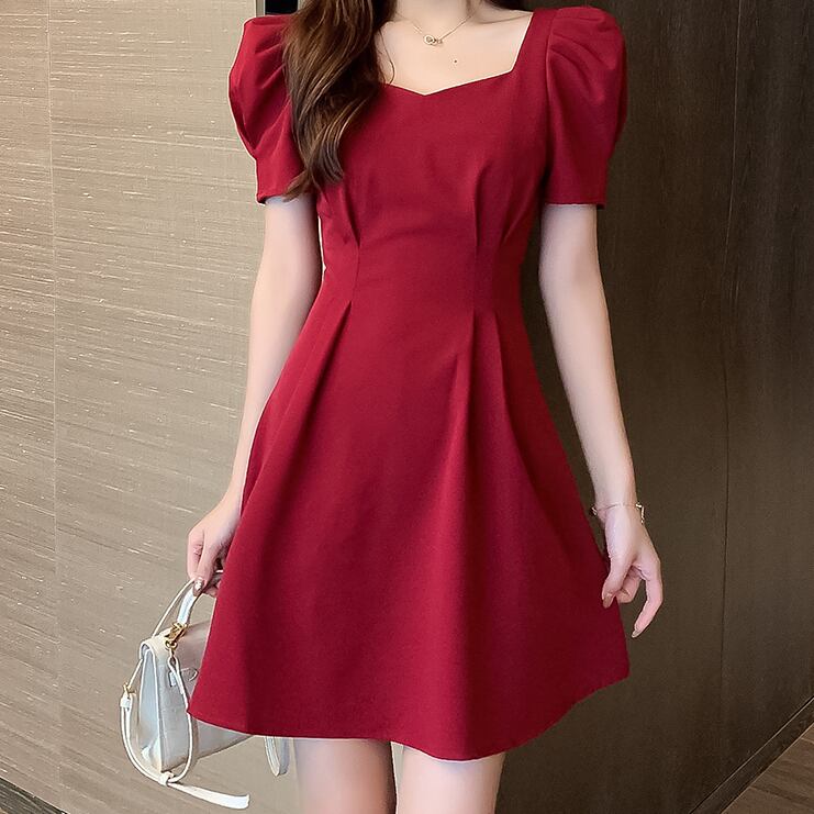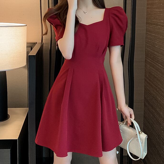ワンピース フレアワンピース Aラインワンピース ショート丈 半袖 無地 春 夏 秋 冬 フレア スリム 細身 Aライン ウエストマーク かわいい きれいめ 上品 おしゃれ お洒落 ラブリー キュート ガーリー スクエアネック ミニ ショート ボリューム袖 パフスリーブ ワンピドレス ブラック レッド S M L XL 10代 20代 女性用 デート お出かけ 女子会 休日 パーティー イベント クリスマス バレンタイン オルチャン ファッション コーデ スタイル モテ 美脚 脚長 | Rena 韓国ファッション レディースアパレル