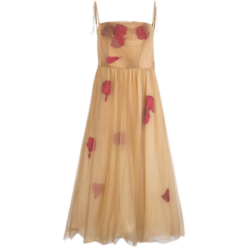 ワンピース フレアワンピース Aラインワンピース 膝丈 ノースリーブ 花柄 フレア Aライン チュール かわいい 大人可愛い ラブリー キュート ガーリー 存在感 ショート ひざ丈 袖なし ワンピドレス ベージュ S M L XL 10代 20代 女性用 パーティー イベント ファッション コーデ スタイル | Rena 韓国ファッション レディースアパレル
