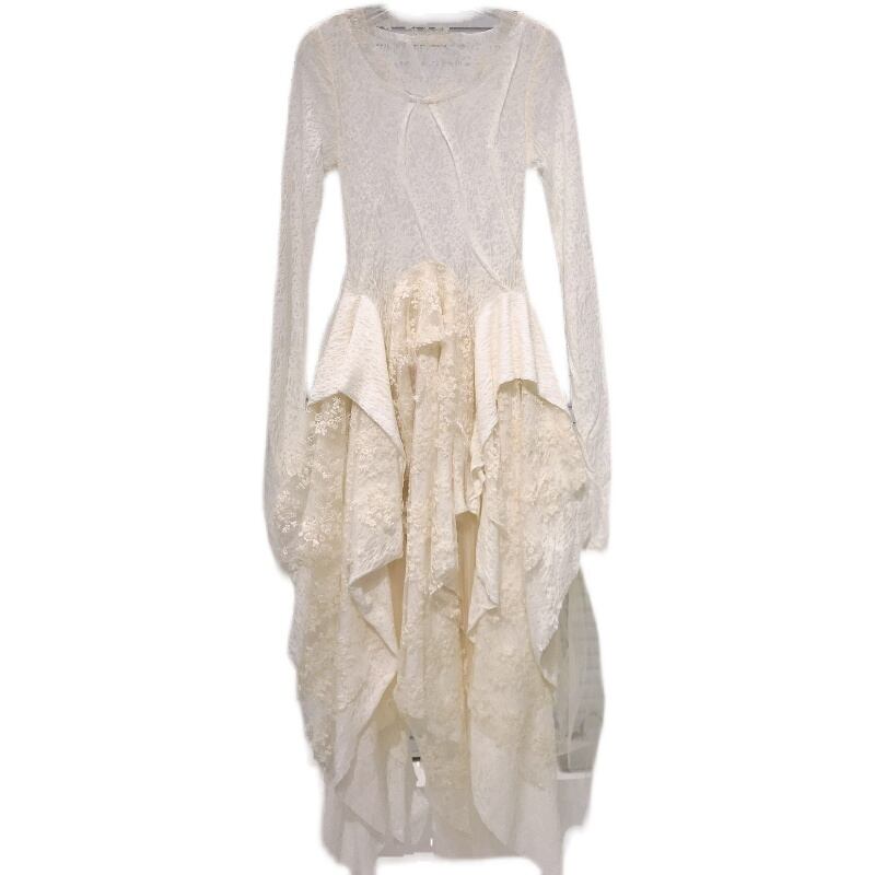 ドレス パーティードレス 膝丈 オフホワイト 長袖 ラウンドネック きれいめ レトロ 存在感 キュート ガーリー 個性的 S M L XL 小花柄 お呼ばれ パーティー パーティ 10代 20代 オルチャン ファッション コーデ | Rena 韓国ファッション レディースアパレル