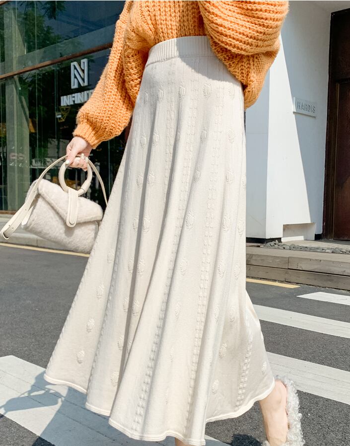 スカート Aラインスカート ロング丈 無地 秋 冬 セミフレア ウエストゴム 大人可愛い きれいめ シンプル 大人 上品 こなれ感 キュート ミモレ ロング ブラック グレー オフホワイト ベージュ S M L XL 20代 30代 女性用 オフィス ビジネス OL 通勤 デート お出かけ 公園デビュー 女子会 休日 着回し 普段使い ファッション コーデ スタイル | Rena 韓国ファッション レディースアパレル