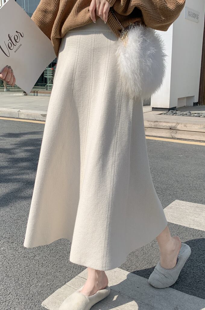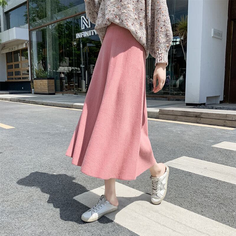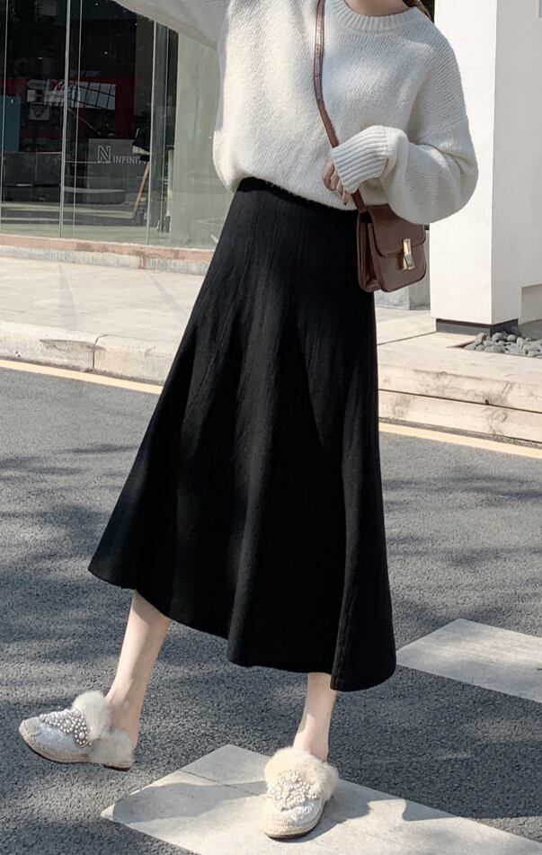 スカート ロングスカート Aラインスカート ロング丈 無地 秋 冬 セミフレア Aライン ウエストゴム 大人可愛い きれいめ シンプル キュート ミモレ ロング ニット ホワイト ブラック ブルー グリーン パープル グレー ベージュ ピンク S M L XL 2XL 10代 20代 30代 40代 女性用 オフィス ビジネス OL 通勤 デート お出かけ 公園デビュー 女子会 休日 着回し 普段使い ファッション コーデ スタイル | Rena 韓国ファッション レディースアパレル