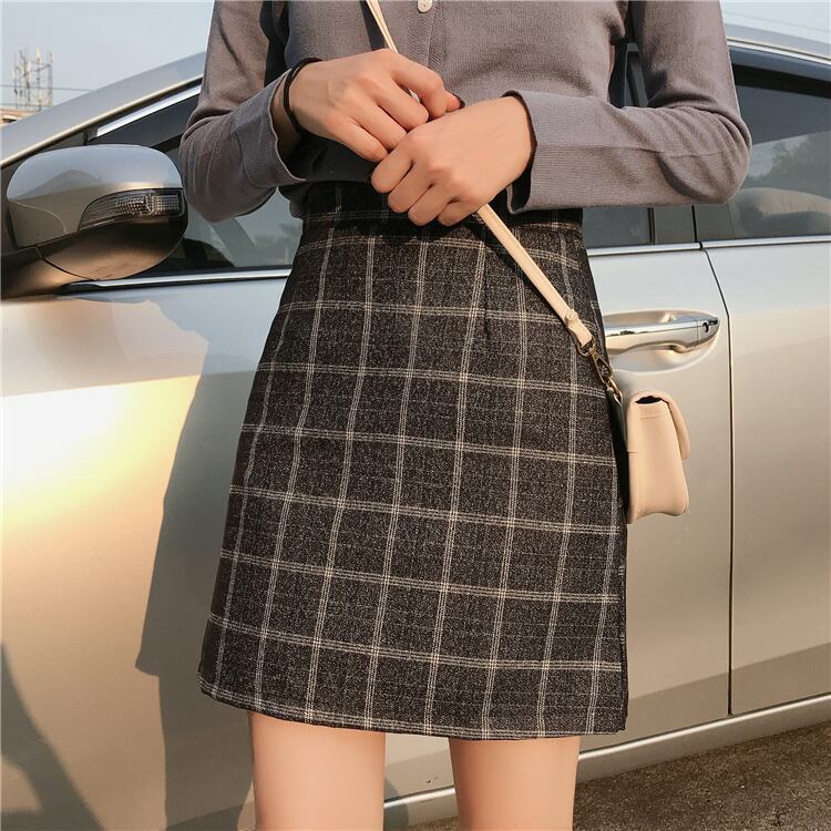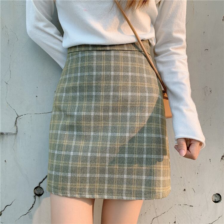 スカート タイトスカート ミニスカート ショート丈 チェック 秋 冬 タイト ストレート かわいい きれいめ おしゃれ お洒落 レトロ ラブリー キュート ガーリー ミニ ショート グリーン グレー ベージュ S M L 10代 20代 女性用 デート お出かけ 女子会 休日 着回し 普段使い ファッション コーデ スタイル | Rena 韓国ファッション レディースアパレル