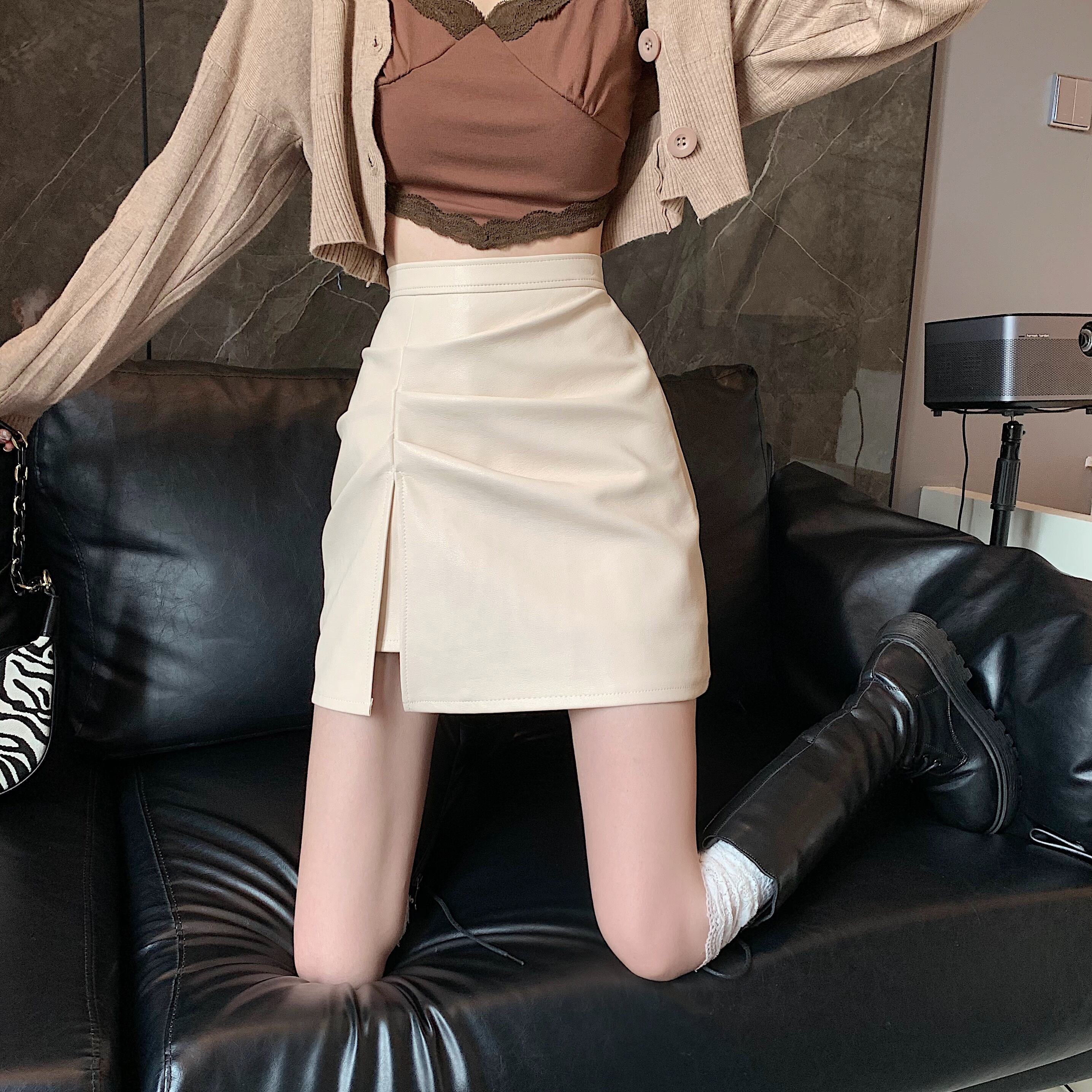 スカート ミニスカート スカート ショート丈 無地 春 夏 秋 冬 スリット きれいめ シンプル カジュアル 大人 上品 おしゃれ お洒落 かっこいい 大人女子 個性的 クール モード系 ミニ ショート レザー 白 ホワイト 黒 ブラック 茶色 ブラウン S M L 10代 20代 30代 OL 通勤 学生 通学 デート お出かけ 女子会 着回し 普段使い ファッション コーデ スタイル モテ 美脚 脚長 送料無料 | Rena 韓国ファッション レディースアパレル