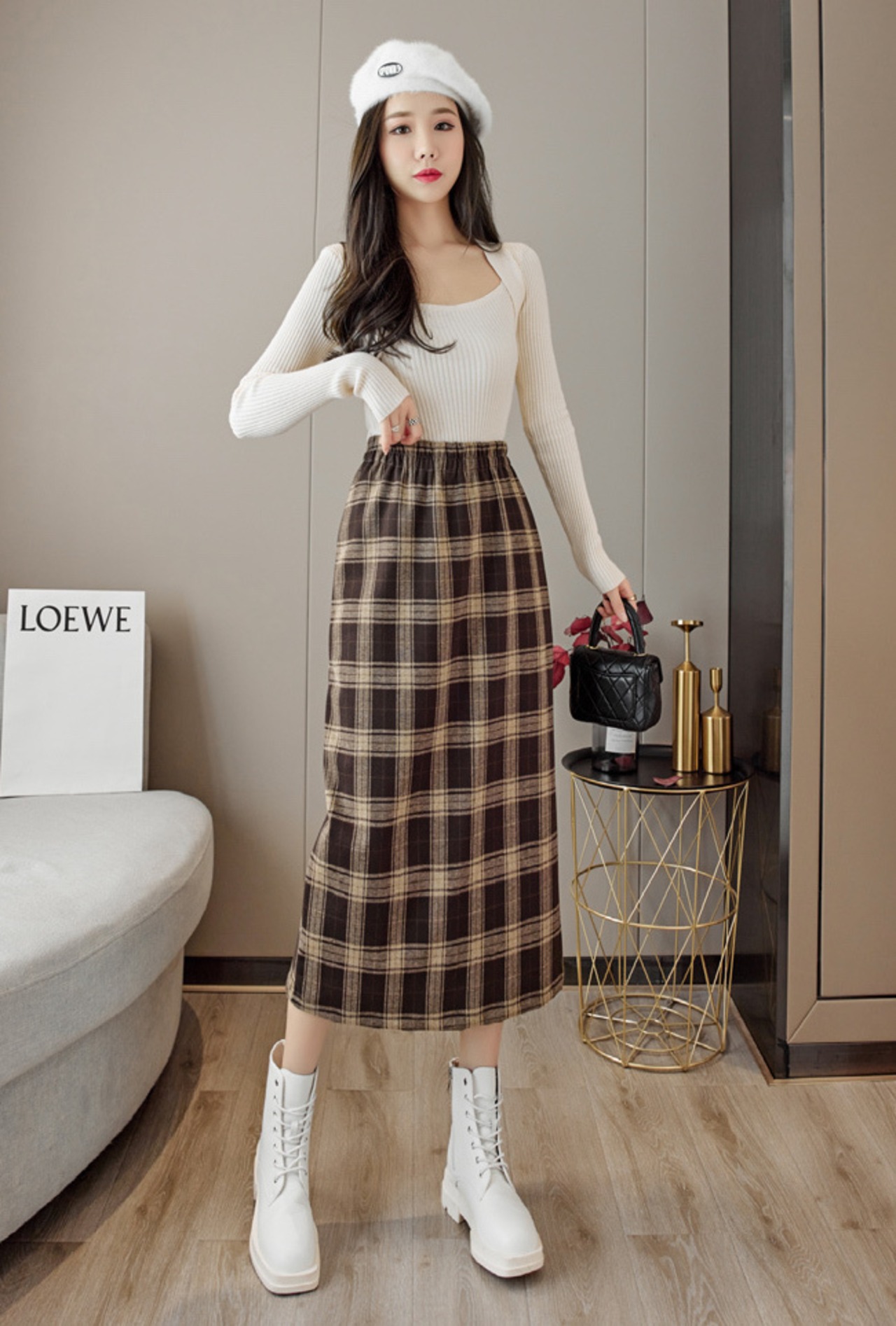 秋色の落ち着いた色合いと、大人気のチェック柄は大人女性も着こなしやすくておすすめ。