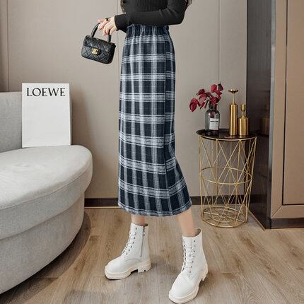 スカート ロングスカート ロング丈 格子柄 秋 冬 ストレート スリット バックスリット かわいい 大人可愛い 大人 上品 おしゃれ お洒落 レトロ 大人女子 ラブリー キュート ガーリー 個性的 黒 ブラック 青 茶色 ブラウン ネイビー S M L XL 10代 20代 30代 通勤 学生 通学 デート お出かけ 公園デビュー 女子会 ファッション コーデ スタイル モテ 送料無料 | Rena 韓国ファッション レディースアパレル
