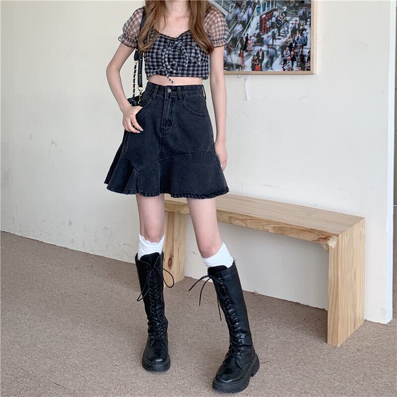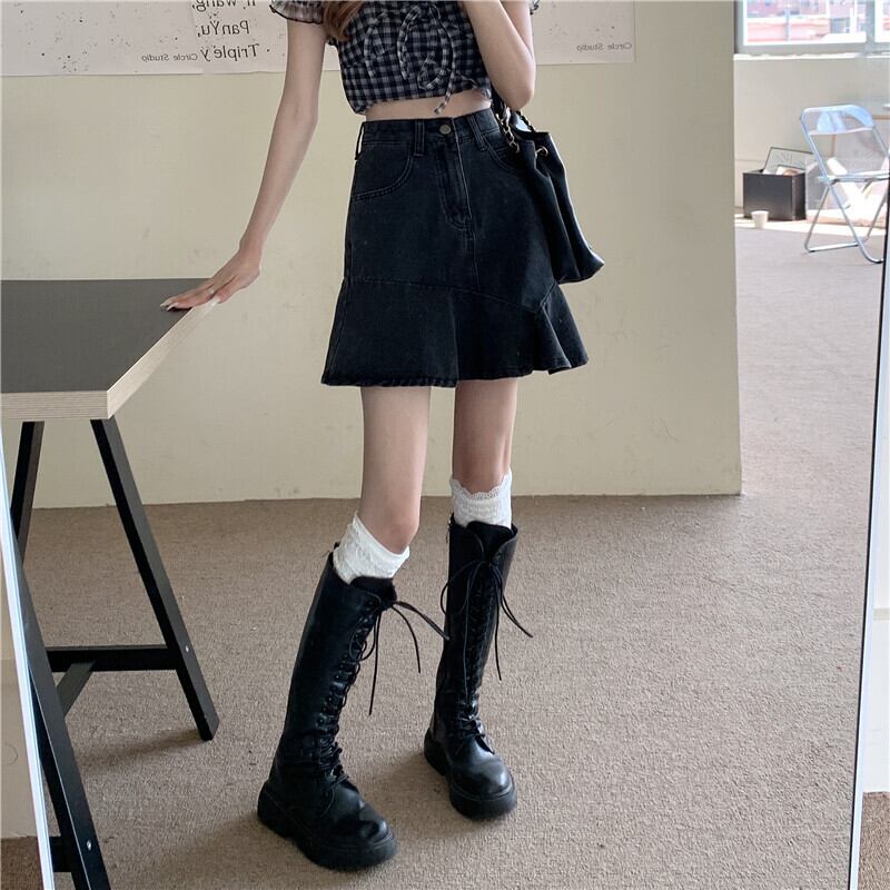 スカート デニムスカート ミニスカート ミニ丈 デニム 春 夏 秋 マーメイド かわいい 大人可愛い カジュアル 大人 おしゃれ お洒落 かっこいい 大人女子 こなれ感 黒 ブラック 青 ブルー S M L XL 10代 20代 通勤 学生 通学 デート お出かけ 公園デビュー 女子会 着回し ファッション コーデ スタイル モテ 定番 送料無料 | Rena 韓国ファッション レディースアパレル