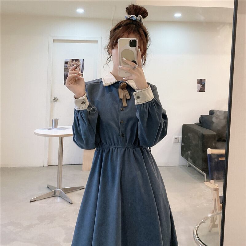 ワンピース シャツワンピース ミモレ丈 マキシ丈 長袖 無地 秋 冬 リボン かわいい 大人可愛い きれいめ カジュアル 大人 上品 おしゃれ お洒落 大人可愛い 大人女子 キュート ガーリー 袖あり 黒 ブラック 赤 レッド 青 ブルー 茶色 ブラウン 10代 20代 30代 デート お出かけ 女子会 休日 ファッション コーデ スタイル モテ 送料無料 ゆったり | Rena 韓国ファッション レディースアパレル
