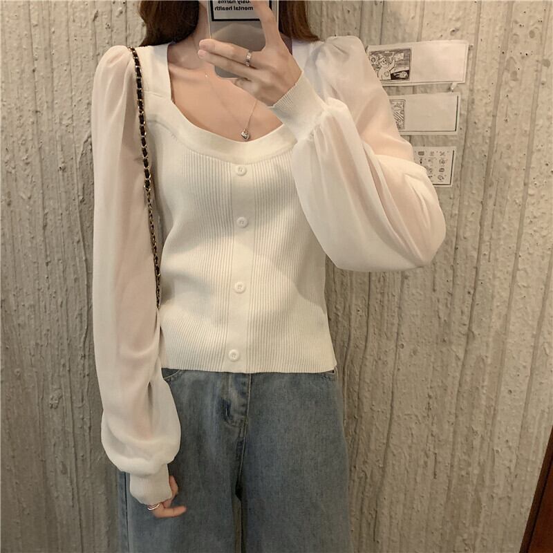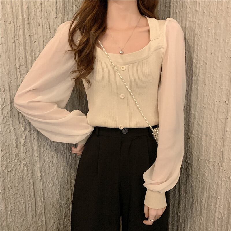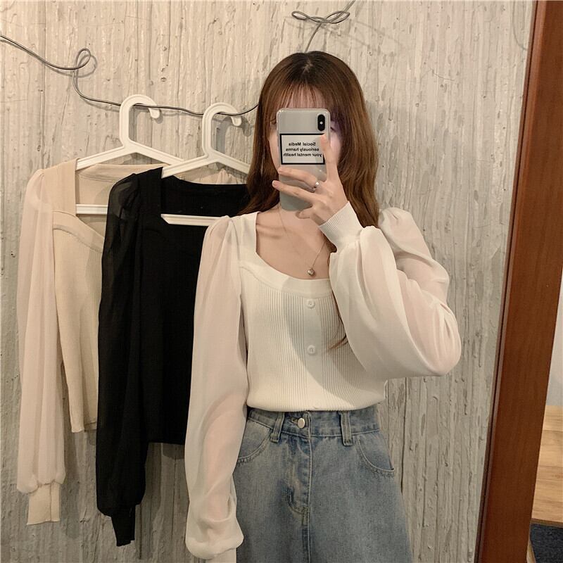 トップス Tシャツ カットソー 長袖 無地 秋 冬 スリム 細身 シフォン 切り替えデザイン ドッキング シースルー きれいめ シンプル 大人 上品 おしゃれ お洒落 個性的 クール モード系 セクシー エレガント 主役級 襟なし 白 ホワイト 黒 ブラック ベージュ 大人カラー フリーサイズ 10代 20代 30代 40代 オフィス OL 通勤 学生 通学 デート お出かけ 公園デビュー 女子会 イベント バレンタイン 着回し 普段使い 重ね着 お揃い 双子 韓国 韓国系 オルチャン ファッション | Rena 韓国ファッション レディースアパレル
