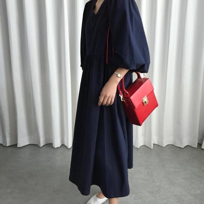 ワンピース フレアワンピース Aラインワンピース ロング丈 七分袖 無地 春 夏 Aライン 大人可愛い きれいめ シンプル カジュアル 大人 上品 おしゃれ お洒落 レトロ 大人女子 こなれ感 ラフ 抜け感 Vネック 襟なし ボリューム袖 パフスリーブ 萌袖 プルオーバー リネン 大人カラー S M L XL 10代 20代 30代 40代 50代 マタニティ 学生 通学 お出かけ 公園デビュー 休日 着回し 普段使い 韓国 韓国系 ファッション コーデ スタイル モテ 体系カバー 送料無料 | Rena 韓国ファッション レディースアパレル