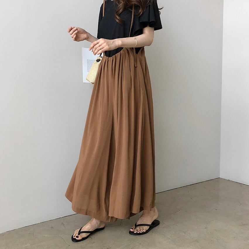 パンツ レディース ワイドパンツ ガウチョパンツ ロング丈 無地 春 夏 シフォン 2way 大人可愛い きれいめ シンプル カジュアル 大人 上品 おしゃれ お洒落 かっこいい レトロ アジアン エスニック 大人女子 こなれ感 ラフ クール 抜け感 ポリエステル 薄手 黒 ブラック 茶色 ブラウン S M L XL 10代 20代 30代 40代 50代 マタニティ OL 通勤 学生 通学 イベント 着回し 普段使い 韓国 オルチャン ファッション スタイル 楽ちん 美脚 脚長 インスタ映え | Rena 韓国ファッション レディースアパレル