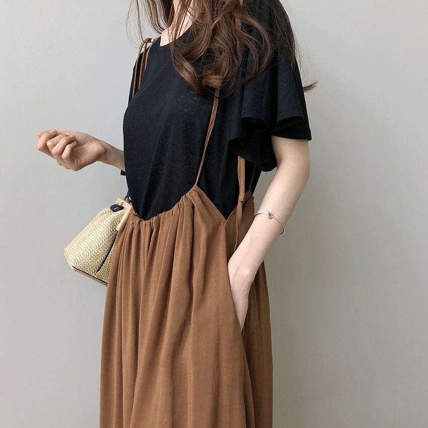細めのサスペンダーなのでカジュアルになりすぎず大人の女性が着やすいデザインになっています。