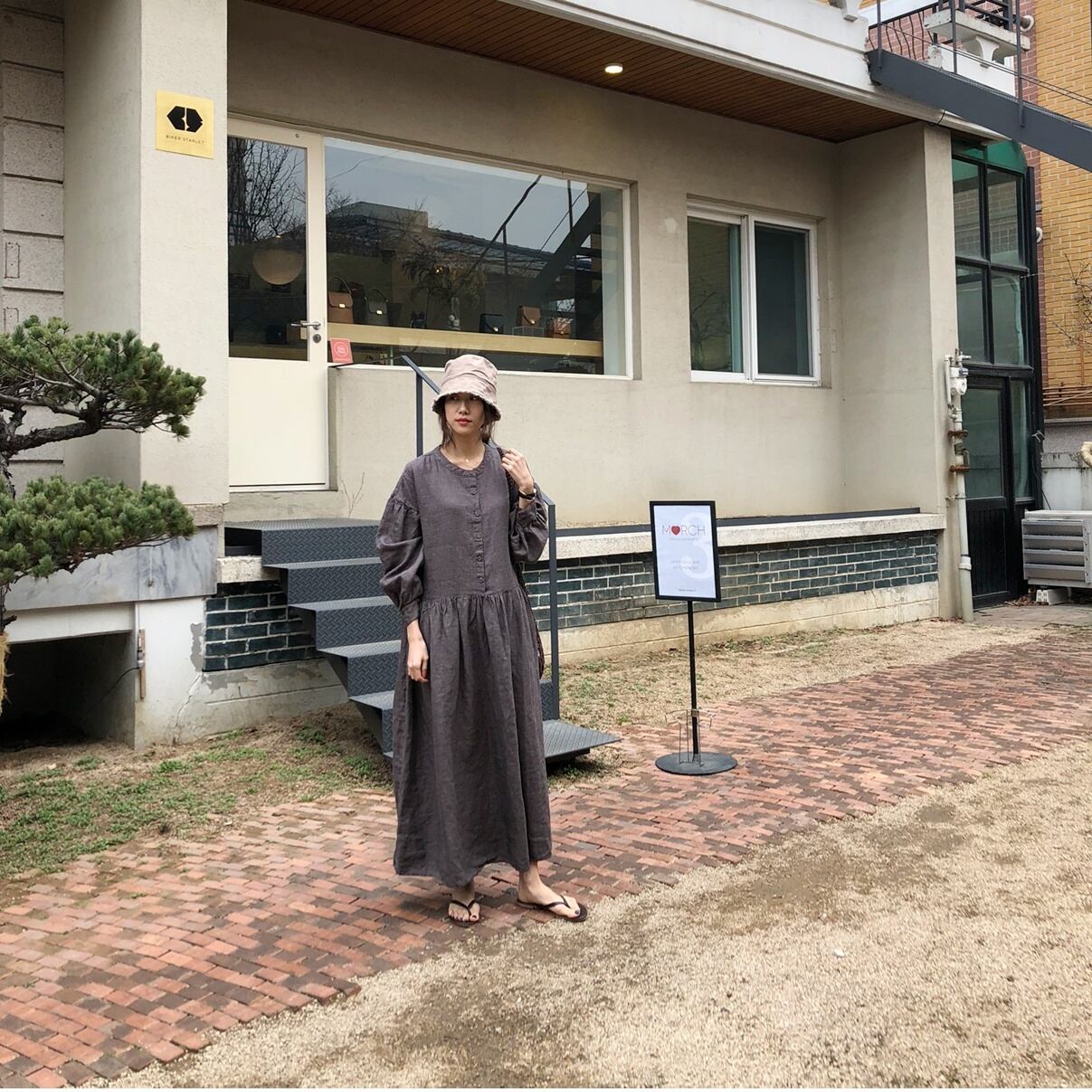 ワンピース フレアワンピース ロング丈 長袖 無地 春 夏 Aライン ボタン 大人可愛い きれいめ シンプル カジュアル 大人 上品 おしゃれ お洒落 レトロ 大人女子 こなれ感 ラフ 抜け感 襟なし リネン 大人カラー S M L XL 10代 20代 30代 40代 50代 マタニティ 学生 通学 お出かけ 公園デビュー 休日 着回し 普段使い 韓国 韓国系 ファッション コーデ スタイル モテ 体系カバー プレゼント ギフト 定番 ゆったり 送料無料 | Rena 韓国ファッション レディースアパレル