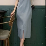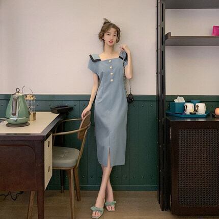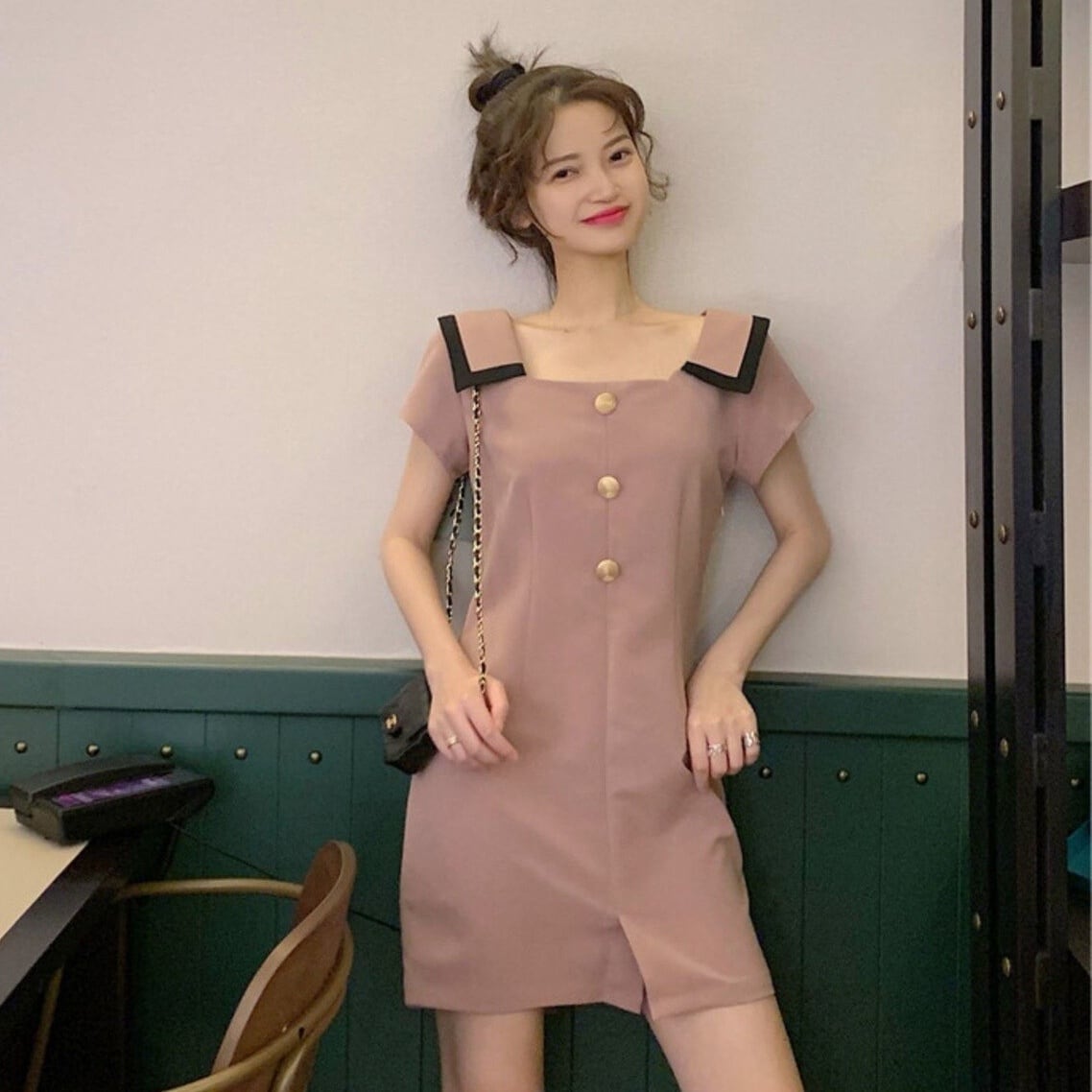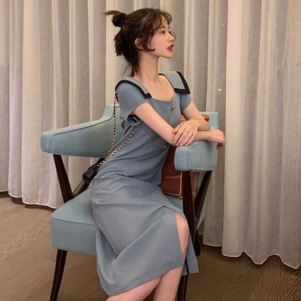 ワンピース レディース コクーンワンピース ショート丈 ミモレ丈 半袖 無地 春 夏 スリム 細身 ストレート スリット かわいい 大人可愛い きれいめ シンプル カジュアル 大人 上品 おしゃれ お洒落 大人可愛い 大人女子 スクエアネック ミモレ 袖あり 青 ブルー ピンク くすみカラー 大人カラー S M L XL 20代 30代 女の子 デート お出かけ 女子会 休日 着回し 普段使い 韓国 韓国系 オルチャン ファッション コーデ スタイル モテ 送料無料 トレンド 流行 インスタ映え | Rena 韓国ファッション レディースアパレル