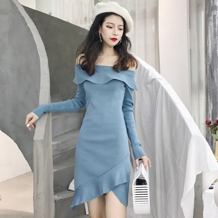 ワンピース レディース タイトワンピース ミニ丈 ショート丈 長袖 無地 春 夏 タイト 細身 ストレート 伸縮性 かわいい 大人可愛い きれいめ シンプル カジュアル 大人 上品 おしゃれ お洒落 レトロ 大人可愛い 大人女子 セクシー エレガント オフショルダー オフショル ミニ ショート 袖あり 黒 ブラック 青 ブルー ピンク 大人カラー S M L XL 20代 30代 デート 女子会 休日 着回し 普段使い 韓国 韓国系 オルチャン 楽ちん モテ 送料無料 トレンド 流行 インスタ映え | Rena 韓国ファッション レディースアパレル