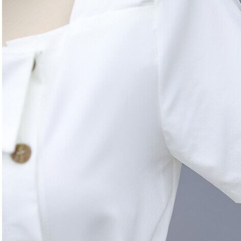 ノーカラーでブラウスのようなデザインが大人っぽい仕上がりになり、セクシーのある丈感が女性らしさを演出します。